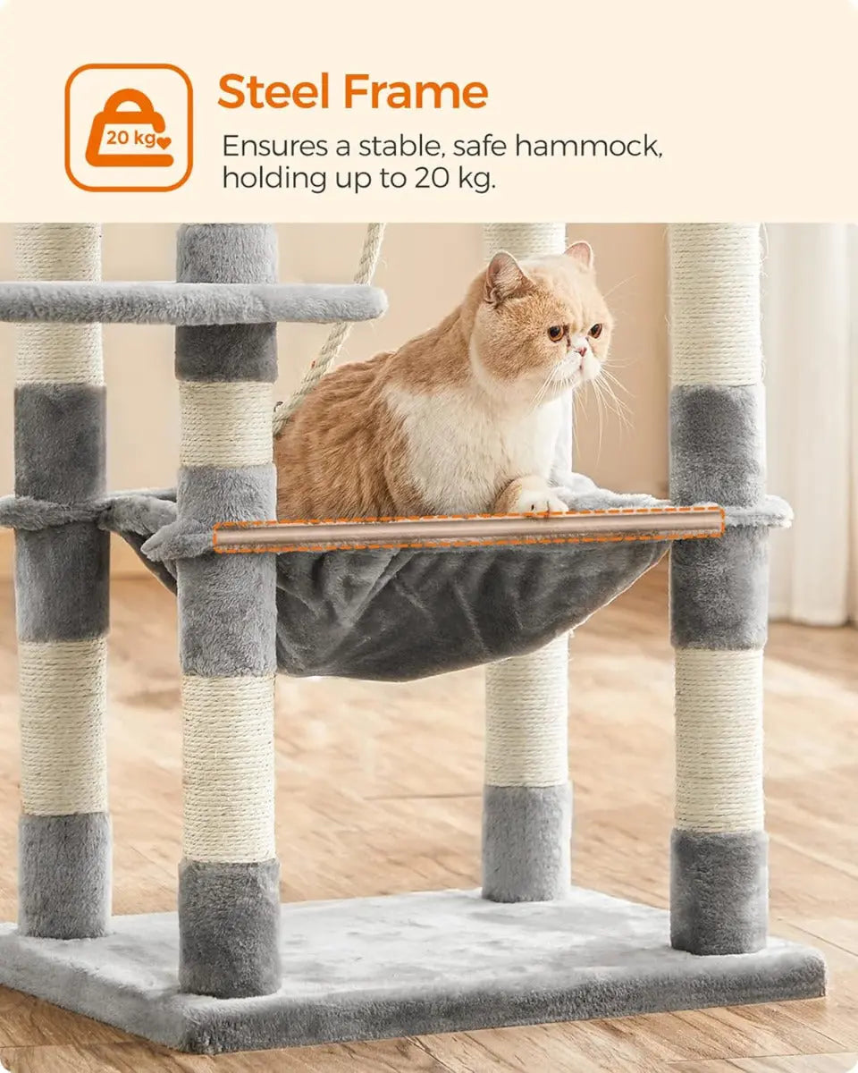 Kratzbaum Mehrstöckig Plüsch mit Hängematte Hellgrau