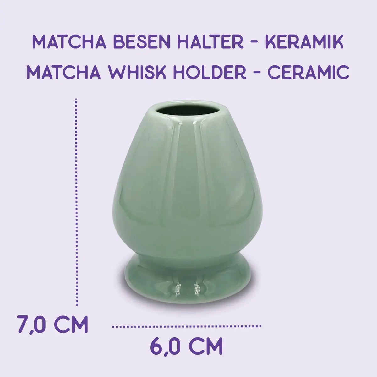 Dieses Modell in zartem Hellgrün besteht aus robuster Keramik. Es bietet dem Chasen nicht nur sicheren Halt, sondern ermöglicht eine gleichmässige Trocknung der Borsten an der Luft. So beugst du Schimmelbildung vor und verlängerst die Lebensdauer deines Besens deutlich. Gleichzeitig bleibt der Chasen in Form, was das Aufschäumen von Matcha auch langfristig erleichtert.