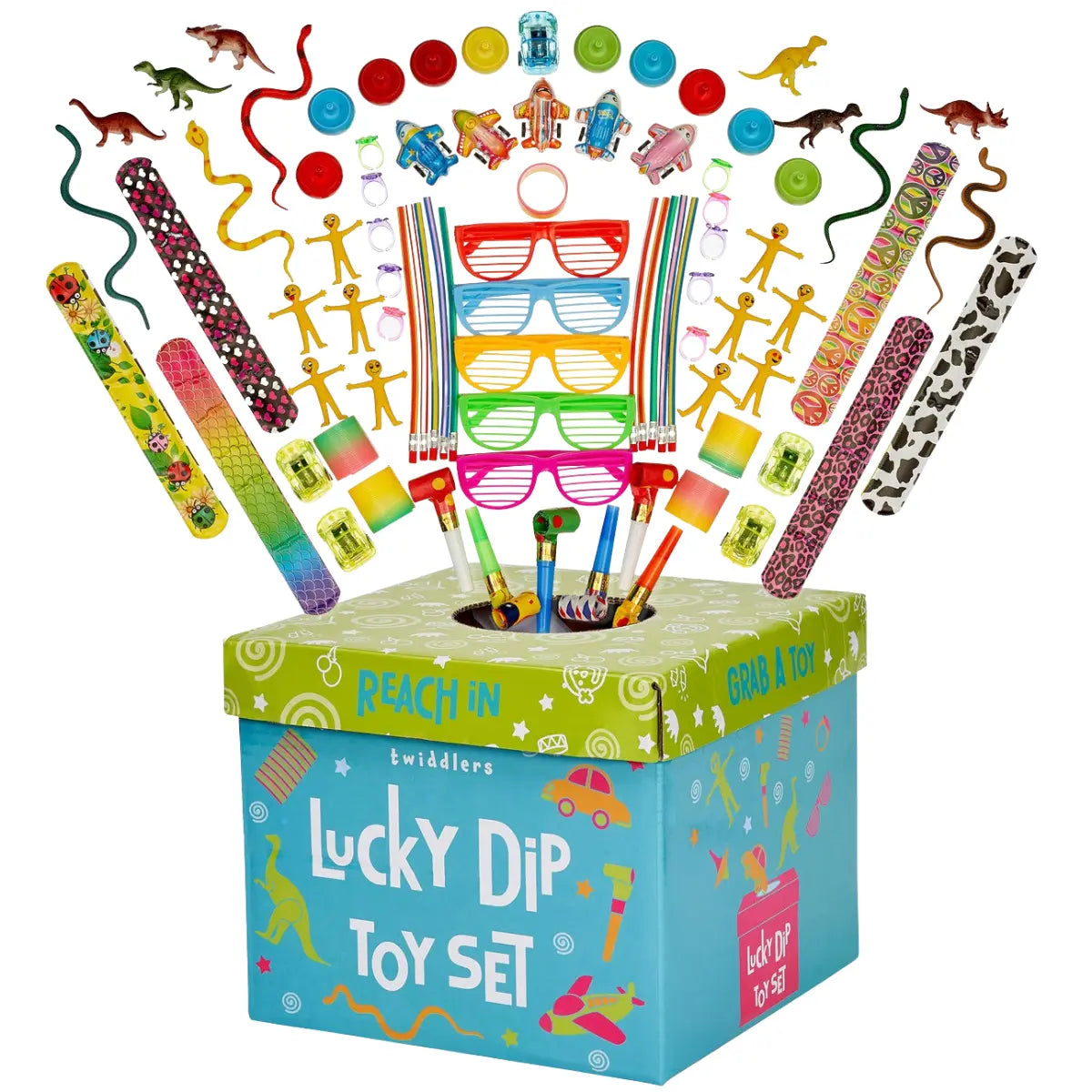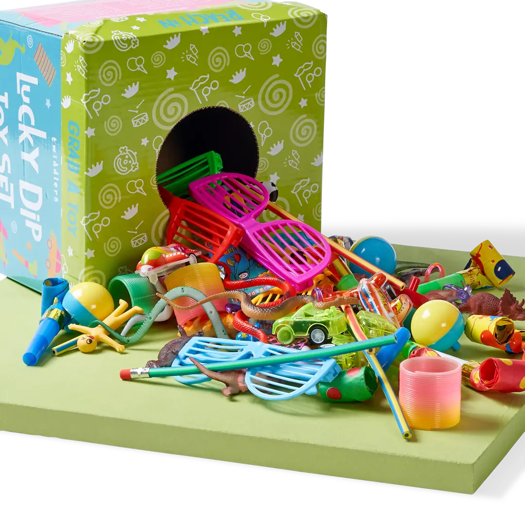 Tauche ein in eine Welt voller Überraschungen mit unserer Lucky Dip Box – einer riesigen Auswahl an Spielzeugen und Gadgets für jede Gelegenheit. Ob als Pinata-Füllung, Klassenzimmer-Belohnung, Partymitgebsel oder Geburtstagsgeschenk, dieses Set bietet alles, was das Herz begehrt. Perfekt für Weihnachtsstrümpfe, Tombola-Preise oder Halloween-Süssigkeiten – die Möglichkeiten sind grenzenlos. Jedes Teil wurde sorgfältig ausgewählt, um Freude zu bereiten und unvergessliche Momente bei Partys, in der Schule oder bei besonderen Anlässen zu schaffen.
