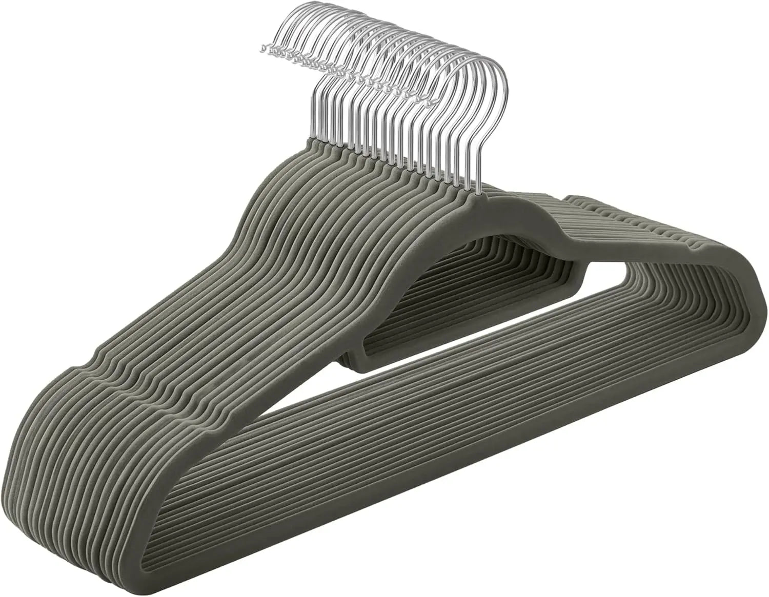 SONGMICS 20er Set Samt-Kleiderbügel – platzsparend, 360° drehbarer Haken, U-förmige Öffnung, 41,5 cm breit – silber-grau, rutschfest & formschonend für Alltag & Business