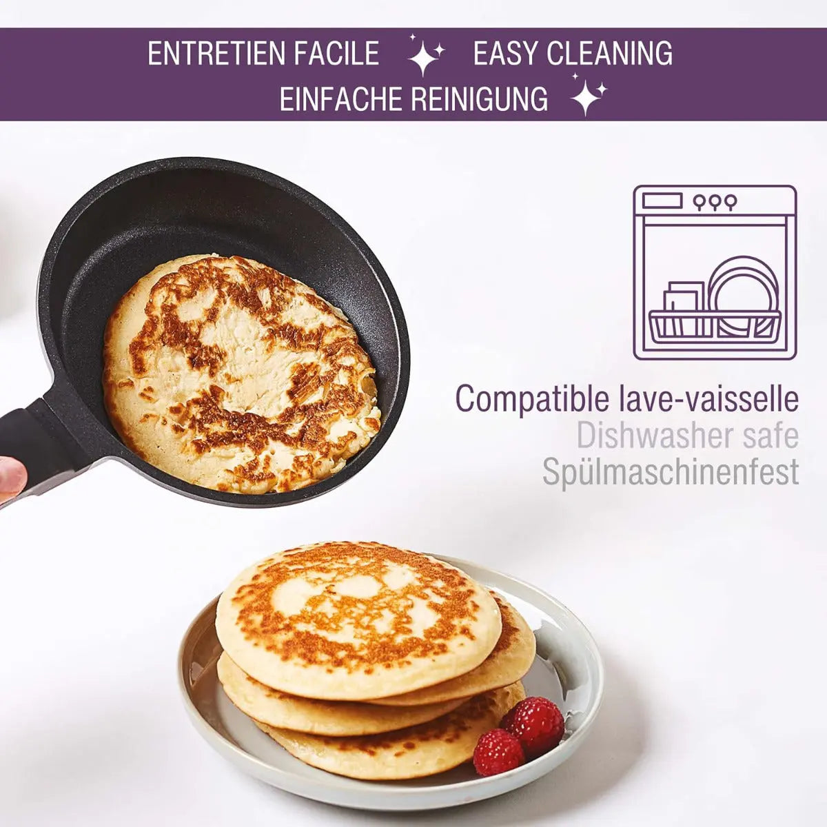Mit der Pfanne 14 cm zauberst du im Handumdrehen regelmässige Pancakes, Blinis oder Spiegeleier. Ihr kompaktes Format ist ideal für kleine Portionen und macht sie zum perfekten Begleiter für Frühstück, Brunch oder kleine Snacks.
