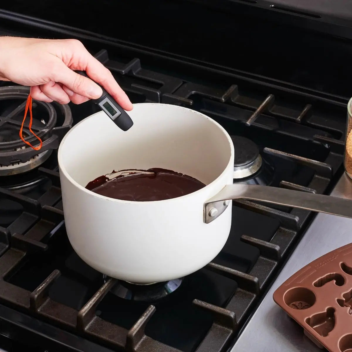 Das Infrarot-Kochthermometer erweist sich besonders bei Backrezepten, die eine präzise Temperaturkontrolle erfordern, als äußerst nützlich. Ob Sie mit Schokolade arbeiten, Zucker karamellisieren oder Marmelade kochen – die Genauigkeit von 10. Grad macht es zum perfekten Werkzeug für feine Backkunst.