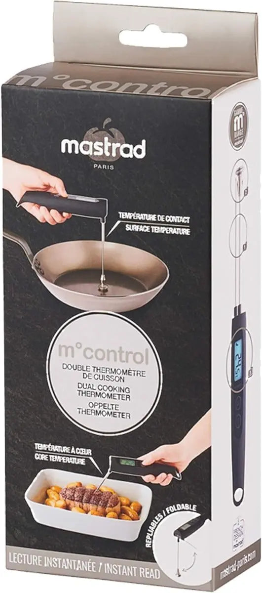 Perfektes Kochen: Ausgestattet mit doppelten Typ-K-Thermometern bietet das M-Control Thermometer eine sofortige Ablesung sowohl der Oberflächentemperatur als auch der Kerntemperatur Ihrer Speisen. Dies gewährleistet eine perfekte Zubereitung, egal ob Sie Fleisch, Fisch oder Backwaren zubereiten.