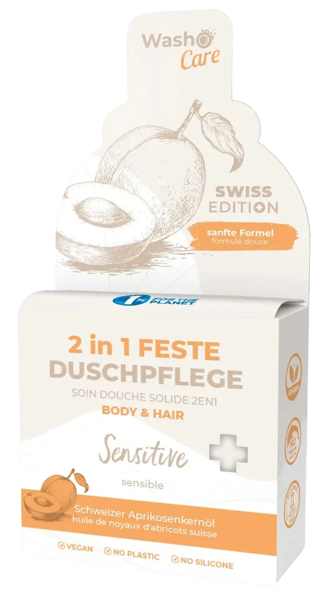 Mit Liebe entwickelt und hergestellt in der Schweiz. Im Washo Care Swiss Edition 2in1 Body & Hair steckt die volle Kraft der Mineralien. Rote Tonerde wirkt antioxidativ und hält die Haut frisch und hydriert, weisse Tonerde entölt fettiges Haar effektiv und tiefenrein. Mit nur einem Stück sind Haut und Haare sauber, frisch und hydriert. Das fruchtig spritzige Aprikosenaroma sorgt zusätzlich für den Gute-Laune-Kick unter der Dusche. Washo Care Swiss Edition ist frei von allergenen Duftstoffen, Sulfaten und dermatologisch auf sensible Haut getestet.