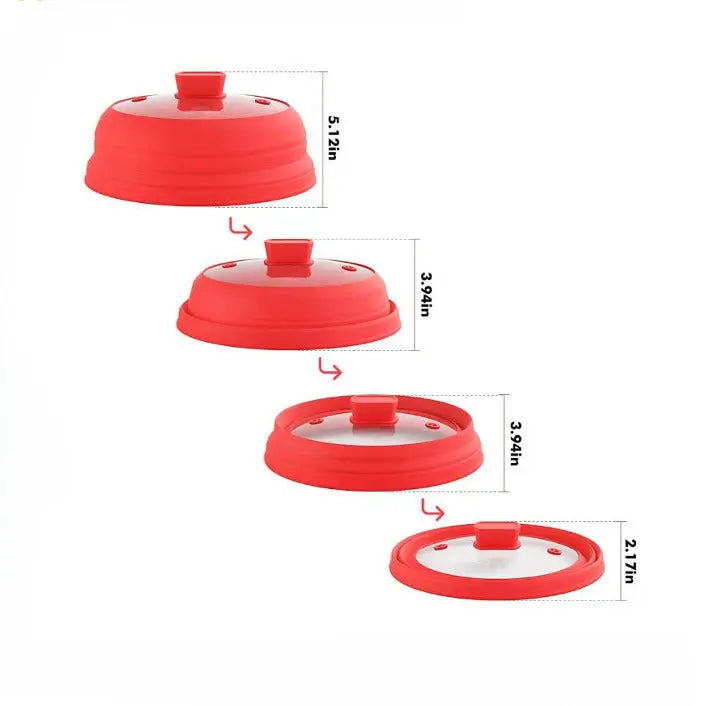 Der hitzebeständige Griff aus Silikon sorgt dafür, dass du den Deckel sofort nach der Mikrowelle sicher anheben kannst – ohne Wartezeit. Nach dem Gebrauch lässt sich die Haube flach zusammenfalten und kompakt verstauen.