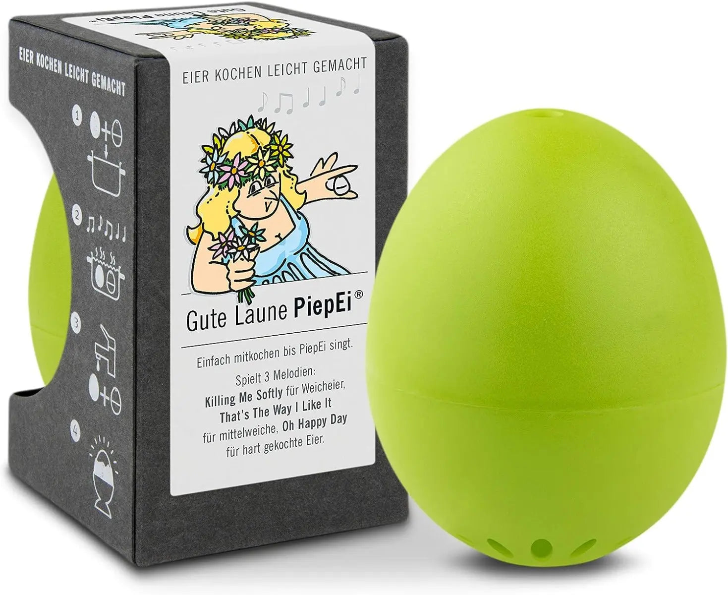 Drei Melodien für drei Härtegrade: Das Gute Laune PiepEi spielt 3 verschiedene Melodien: „Killing Me Softly“ für perfekte Weicheier, „That‘s the Way I Like It“ für perfekte mittelweiche Eier und „Oh Happy Day“ für perfekte harte Eier.