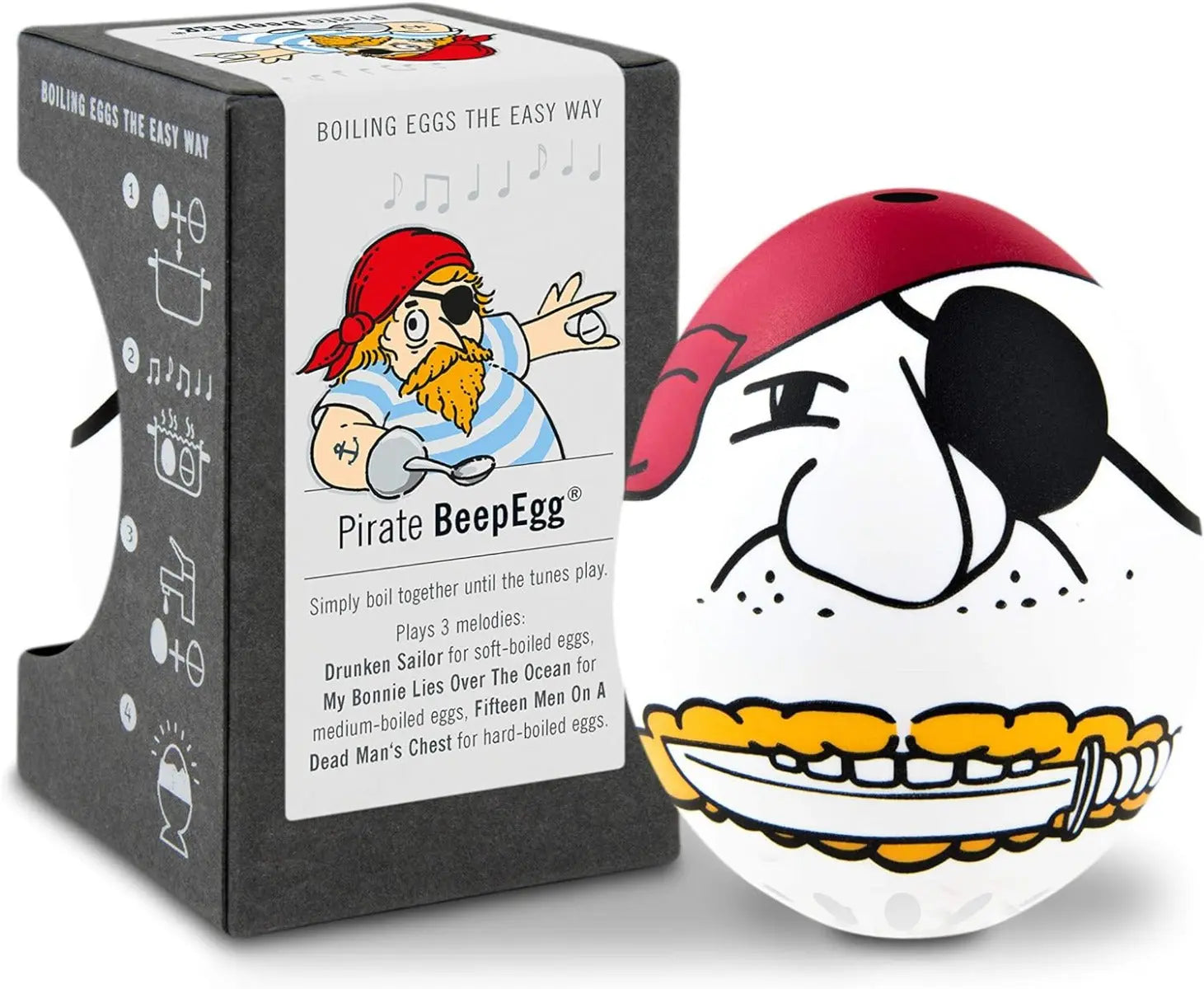 Drei Melodien für drei Härtegrade: Ob weich, mittelweich oder hart gekocht, Piraten PiepEi spielt für jede Stufe eine andere Melodie. "DRUNKEN SAILOR" für weich gekochte Eier, "MY BONNIE LIES OVER THE OCEAN" für das perfekte mittelweiche Ei und "ALLE DIE MIT UNS AUF KAPERFAHRT FAHREN" sobald das hart gekochte Ei fertig ist.