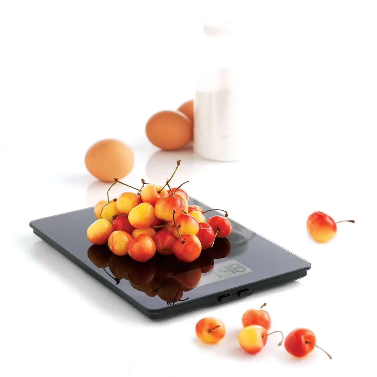 Die Mastrad F76600 Küchenwaage ist ein hochpräzises, elegantes und praktisches Kücheninstrument, das bis zu 5kg mit einer Genauigkeit von 1g wiegen kann. Dieses Modell zeichnet sich durch sein robustes Design aus Einscheiben-Temperglas aus, das nicht nur für eine ansprechende Optik sorgt, sondern auch einen hohen Schutzstandard gegen Kratzer und Risse bietet. Die Waage ist somit ein idealer Helfer in jeder Küche.