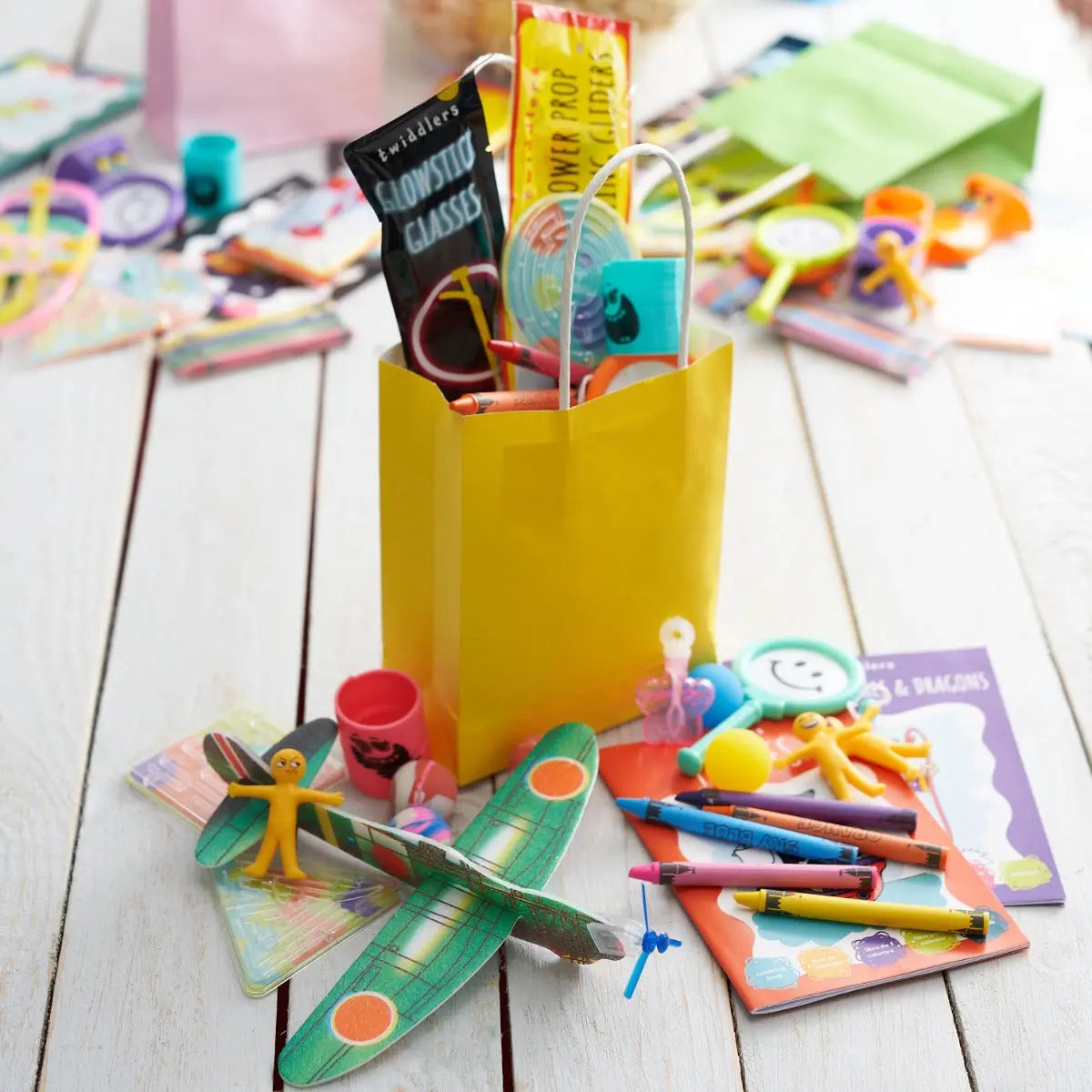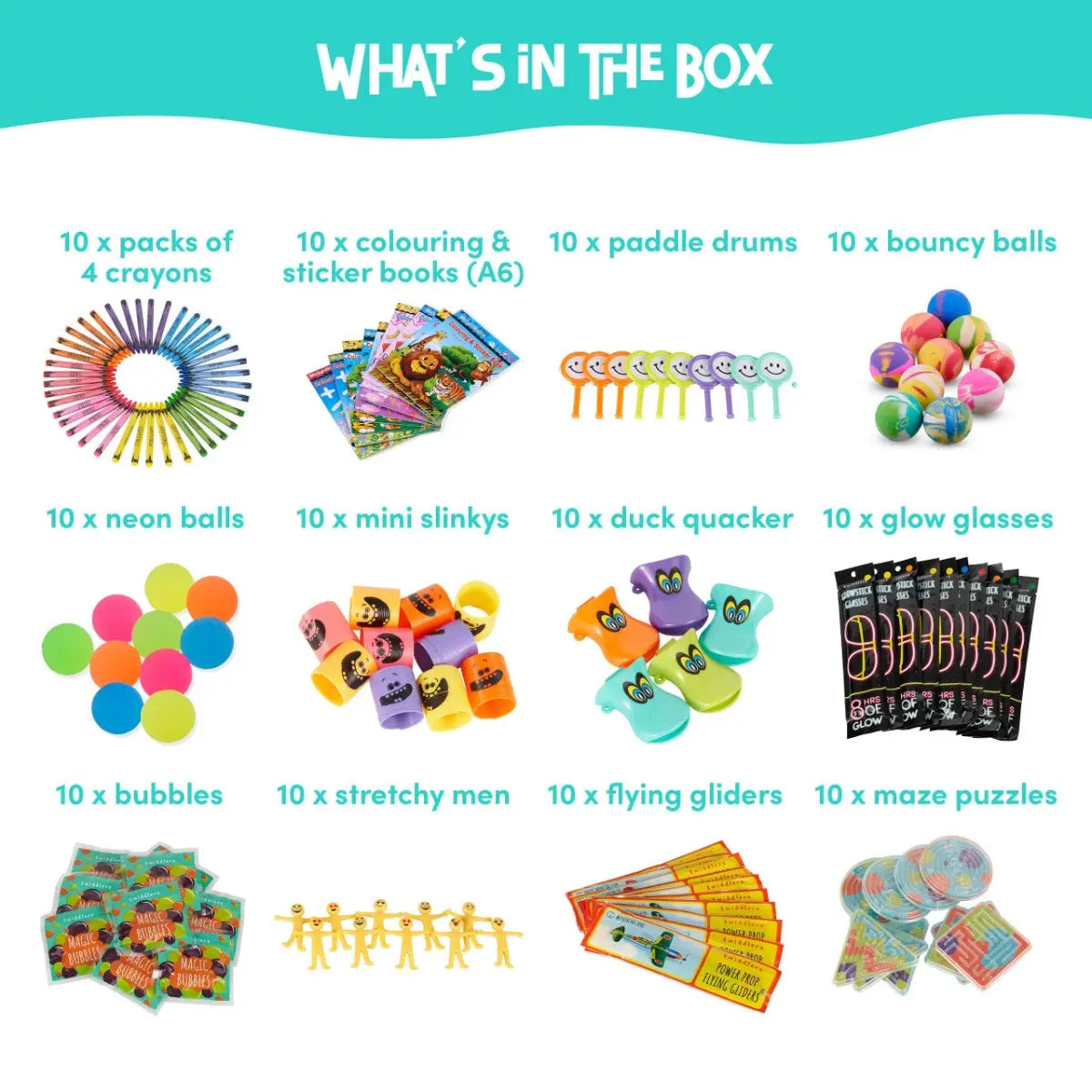 Das Premium Party Bag Füller Set bietet eine Auswahl von 12 verschiedenen Spielzeugen und Mitgebseln, perfekt für Kindergeburtstage, Feiern oder als Belohnungen im Klassenzimmer.