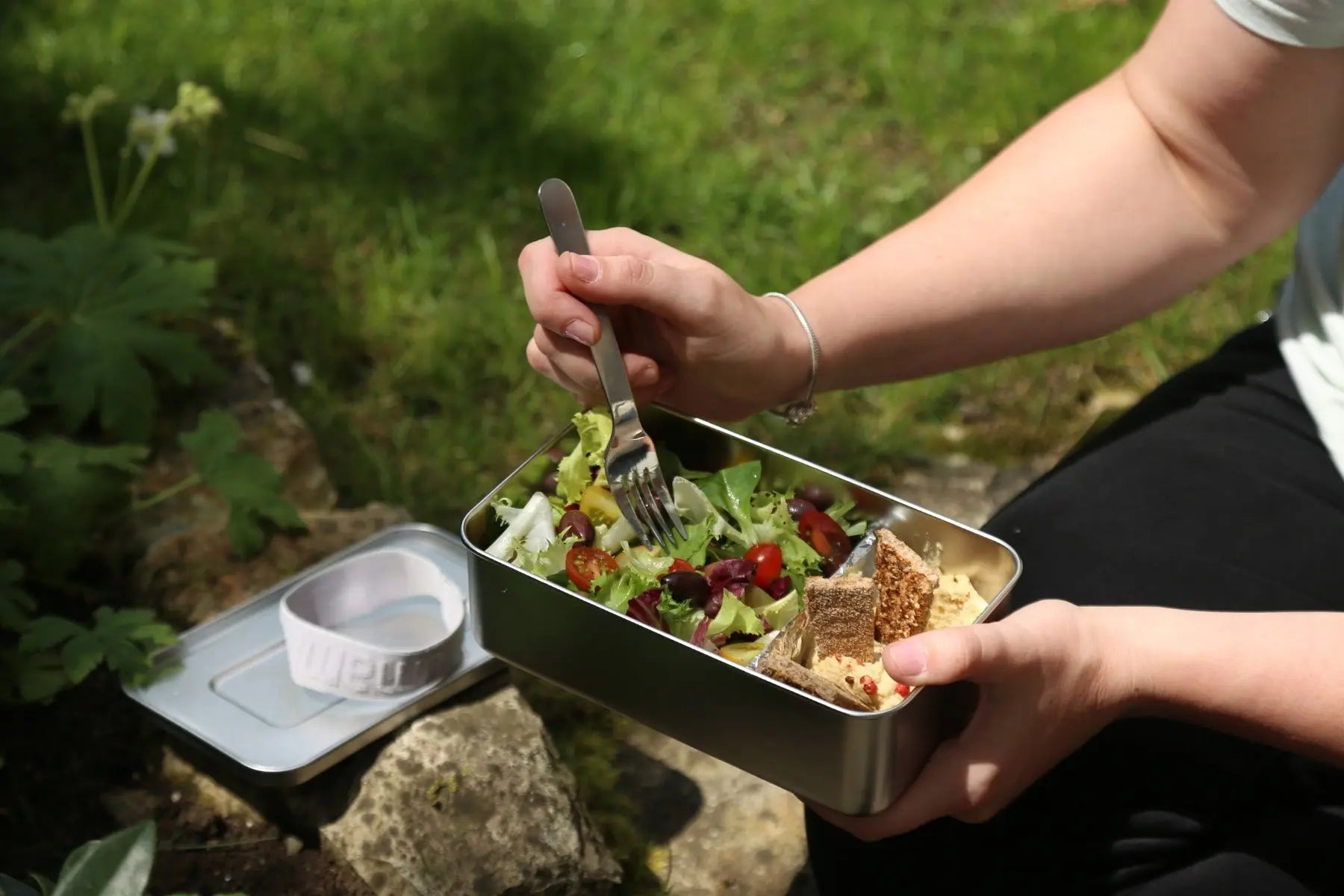 Umweltbewusst und Sicher: Ganz ohne BPA und Plastik, setzt diese Lunchbox auf Materialien, die sowohl für Sie als auch den Planeten sicher sind. Ihre Robustheit garantiert, dass sie den täglichen Beanspruchungen standhält und gleichzeitig vollständig recycelbar bleibt.