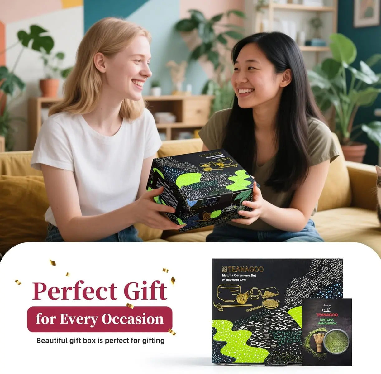 Das 10-teilige Matcha Set Obsidian von TEANAGOO vereint traditionelle japanische Teekultur mit moderner Eleganz. Mit hochwertiger Keramikschale, Bambus-Werkzeugen, Sieb, Teedose und praktischem Zubehör bietet es alles für die authentische Zubereitung von Matcha – perfekt für Einsteigerinnen, Einsteiger und Matcha-Liebhaber. Geliefert in einer stilvollen Geschenkbox.