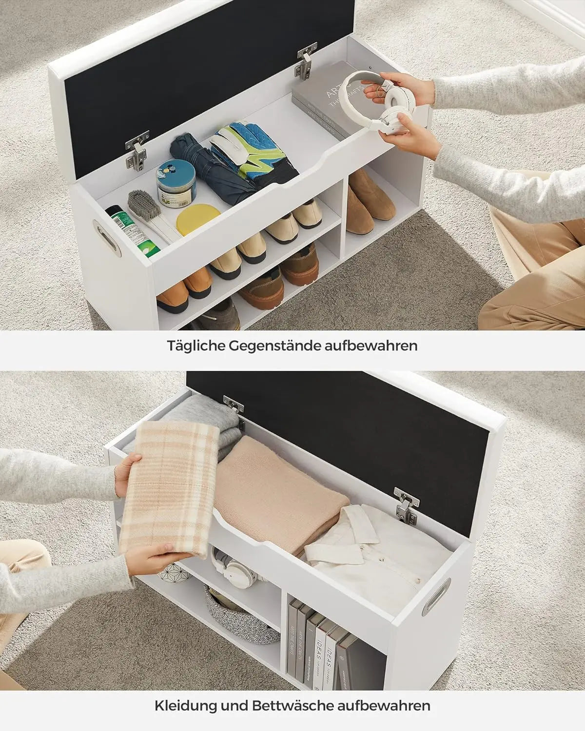 Entdecken Sie die SONGMICS Schuhbank mit Sitzfläche – die perfekte Kombination aus Stil und Funktionalität für Ihr Zuhause! Diese elegante Sitzbank in wolkenweiss bringt nicht nur einen Hauch von Minimalismus in Ihren Flur oder Ihr Wohnzimmer, sondern bietet auch praktischen Stauraum für Ihre Schuhe und Accessoires.