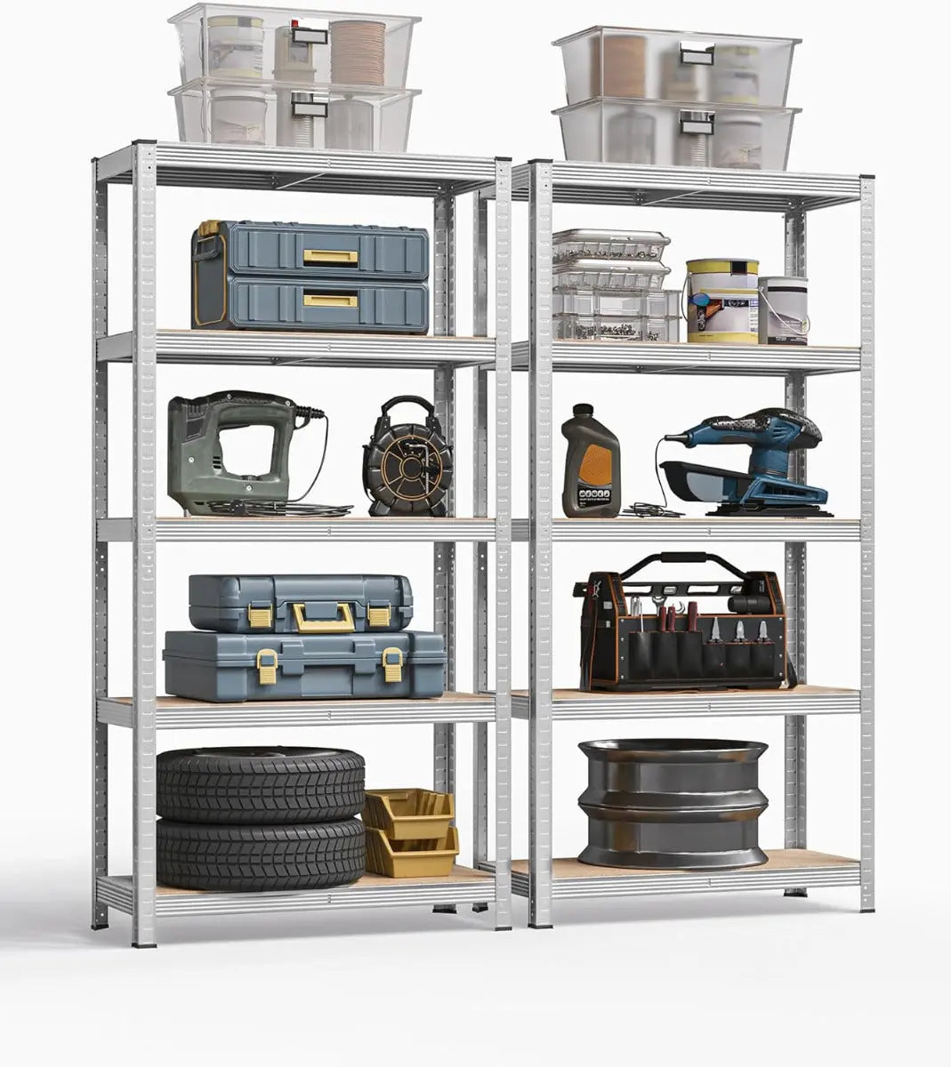 Schwerlastregal 2er Set mit Stahlgestell silbern