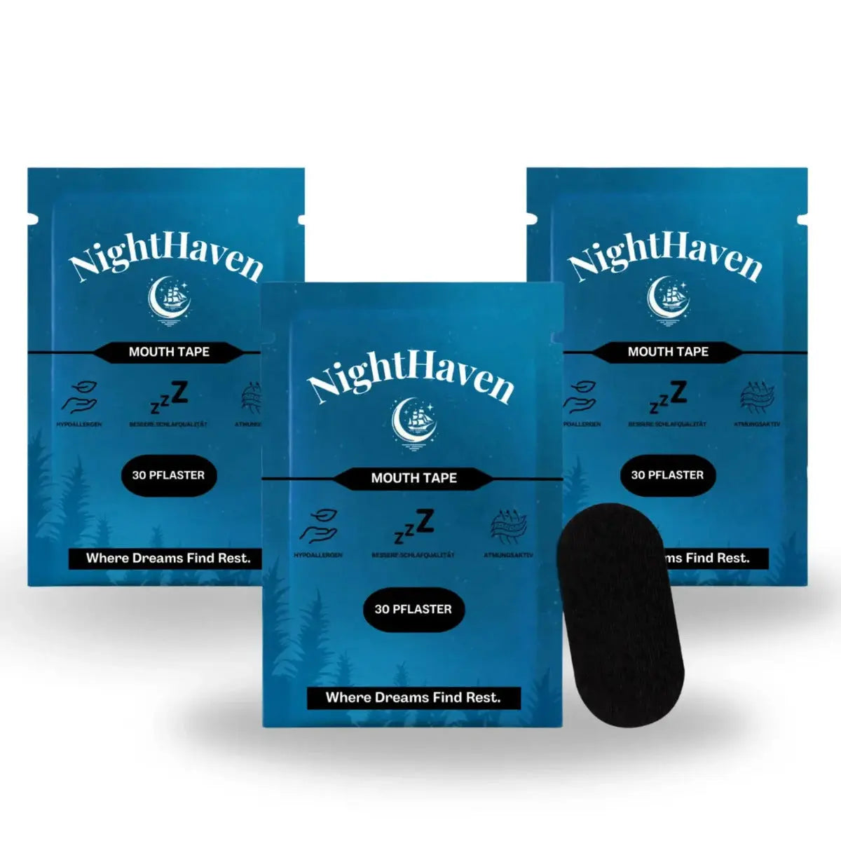 Die Mundpflaster von NightHaven bieten eine einfache und natürliche Möglichkeit, die Schlafqualität zu verbessern und das allgemeine Wohlbefinden zu steigern. Sie fördern die Nasenatmung, indem sie den Mund während des Schlafs sanft verschliessen – ganz ohne chemische Zusätze oder störende Hilfsmittel.