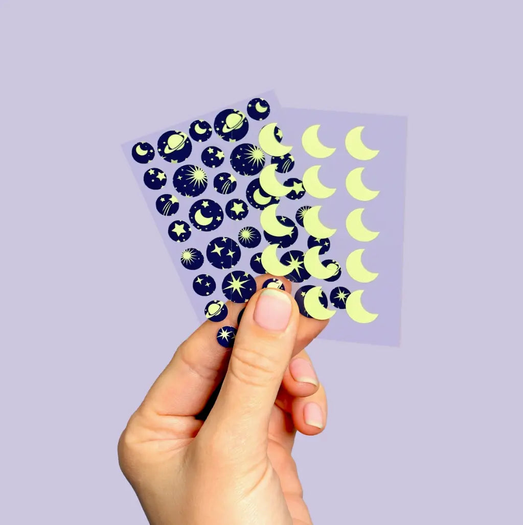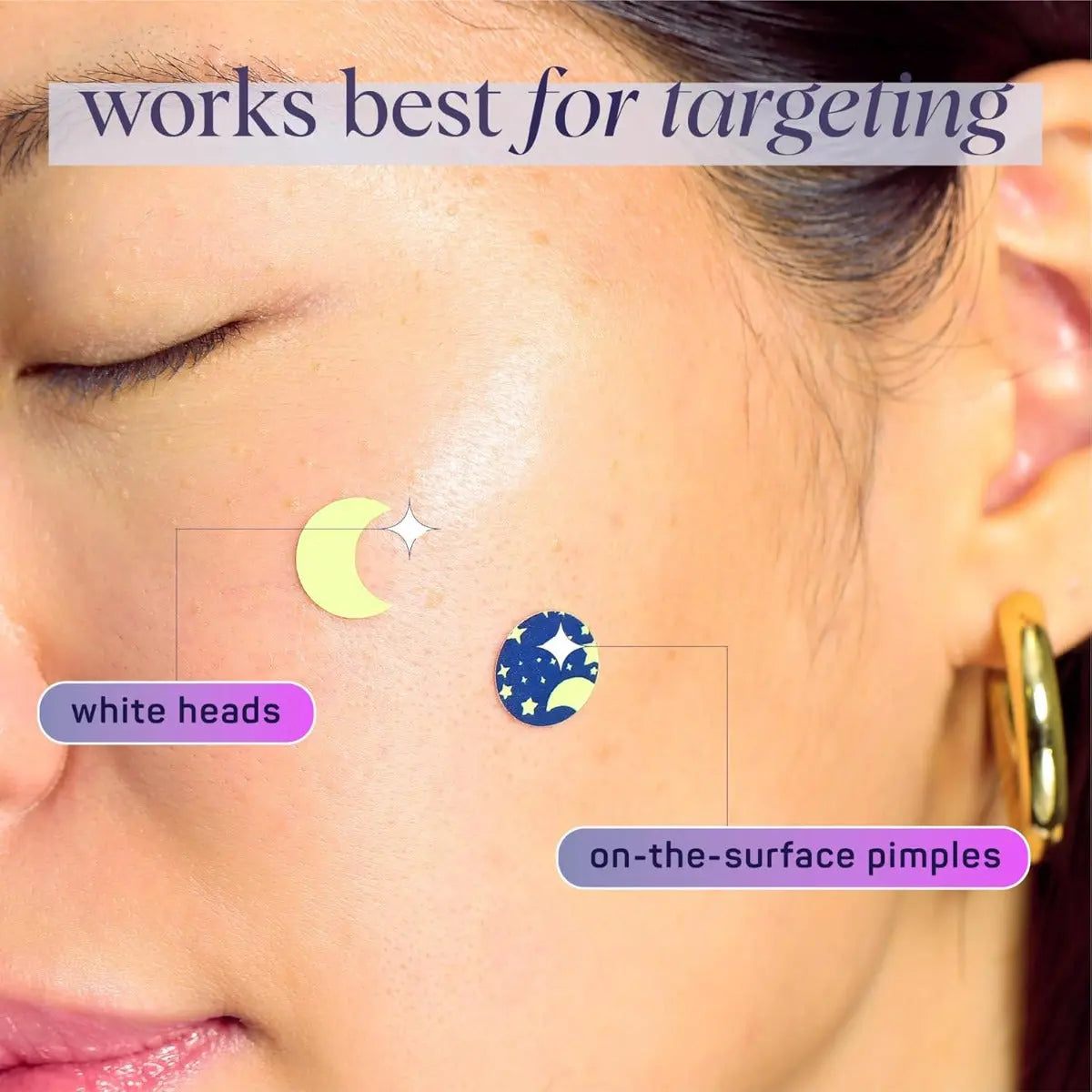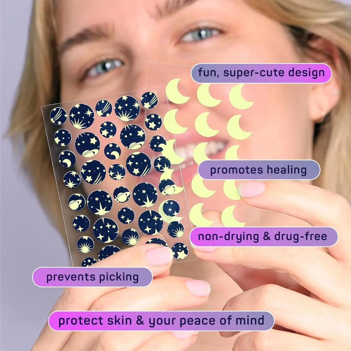 Weil Hautpflege eine Hauptrolle in deinem Abendritual spielt! Diese galaktisch geformten Hydrocolloid-Pflaster helfen, das Hautbild über Nacht zu verbessern, indem sie Unreinheiten aufnehmen und die sichtbaren Hautunreinheiten verkleinern. Die Pflaster fördern die Heilung, verhindern das Aufkratzen, sind nicht austrocknend und frei von Medikamenten und haben ein super süßes Design. Die Hydrocolloid-Formel hilft, Öligkeit zu kontrollieren, Rötungen und Entzündungen zu reduzieren, Hautunreinheiten zu verkleinern und zu verhindern, dass du sie ausdrückst. Trage das Pflaster auf saubere, trockene Haut auf, lass es über Nacht einwirken und entferne es am nächsten Morgen. Bewahre die Pflaster an einem kühlen, trockenen Ort auf!