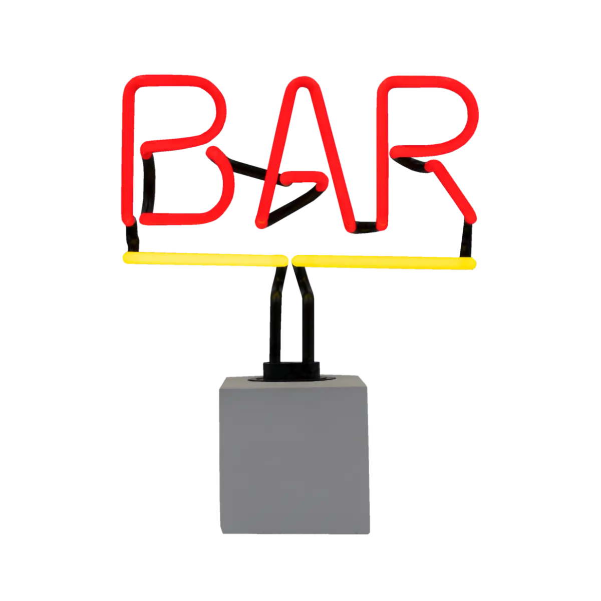 Glas Neon Tischlampe mit Betonsockel - BAR