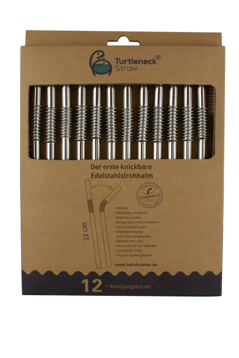 Die Strohhalm-Alternative aus robustem Edelstahl ist ein echter Gewinn für alle, die auf Nachhaltigkeit setzen, aber keine Abstriche beim Komfort, Design und Nutzen machen wollen. Hinzukommt, dass unsere wiederverwendbaren Strohhalme einfach zu reinigen sind, Qualität und Stabilität bieten sowie den Geschmack des Lieblingsgetränks unverfälscht weitergeben. Und das alles bei maximaler Flexibilität, denn der Turtleneck® Straw macht dank seiner Biegsamkeit seinem Namen alle Ehre. So lassen sich die Trinkhalme aus Edelstahl vielseitig einsetzen. Zum Beispiel als Löffelersatz in Heissgetränken oder für Menschen mit Handicap. Sogar Suppe könnt ihr mit dem Turtleneck® Straw essen.
