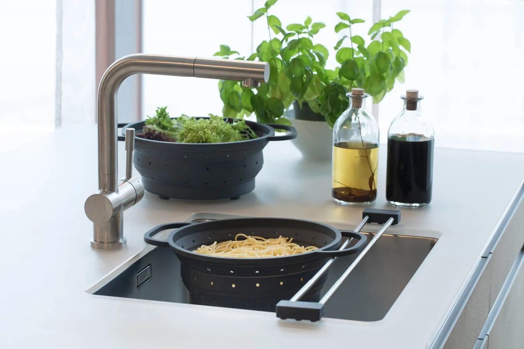 sieb.up ist ein hochwertiges Sieb aus hitzebeständigem Silikon und einem Edelstahl-Korpus. Man kann damit kochen, dämpfen, auftauen und abseihen, denn es verträgt Temperaturen von minus 20 bis plus 220 Grad C. sieb.up kann mit einem Handgriff von 10,5 cm auf nur 3 cm zusammengefaltet werden, um platzsparend in der Küchenlade verstaut oder im Geschirrspüler gewaschen zu werden.