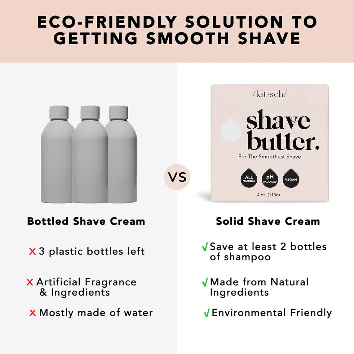 Erlebe eine revolutionäre Rasur mit der Kitsch Shave Butter, die deine Haut während des Rasierens sanft polstert und mit intensiver Feuchtigkeit und Nährstoffen versorgt. Diese einzigartige Butterformel sorgt für eine „klare“ Rasur ohne lästige Schaumbildung, sodass du genau sehen kannst, wo du rasierst. Ideal für eine gründliche Rasur, die deine Haut weich und geschmeidig hinterlässt – ganz ohne Rötungen oder Irritationen. Die Kitsch Shave Butter bietet eine völlig plastikfreie und flaschenfreie Rasiererfahrung, die gut für dich und die Umwelt ist. Für die glatteste Rasur aller Zeiten verwende sie zusammen mit dem Kitsch Perfect Glide Safety Razor. Hergestellt aus veganen und tierversuchsfreien Inhaltsstoffen, ist diese Rasierseife frei von Parabenen, Phthalaten, Silikonen, Sulfaten und künstlichen Duftstoffen. Sie bietet eine pflegende Alternative zu herkömmlichen Rasierschaums und sorgt für eine hautfreundliche Rasur, die du lieben wirst. Einfach die Kitsch Shave Butter auf die feuchte Haut auftragen und großzügig auf die gewünschten Bereiche verteilen. Dann mit einem sanften, gleitenden Rasierer die Haare entfernen. Deine Haut wird sich nach jeder Rasur erfrischt und hydratisiert anfühlen. Die Kitsch Shave Butter ist die perfekte Ergänzung für deine nachhaltige Körperpflege-Routine und sorgt dafür, dass jede Rasur ein wahres Verwöhnerlebnis wird. Hauptmerkmale: Feuchtigkeitsspendende Formel: Polstert die Haut während der Rasur und versorgt sie mit Feuchtigkeit und Nährstoffen. Klare Rasur: Kein unnötiger Schaum, für eine präzise Rasur. Umweltfreundlich: Flaschen- und plastikfreies Rasiererlebnis. Vegan und natürlich: Frei von Parabenen, Phthalaten, Silikonen, Sulfaten und künstlichen Duftstoffen. Perfekt für den Kitsch Perfect Glide Safety Razor: Für eine besonders glatte Rasur.