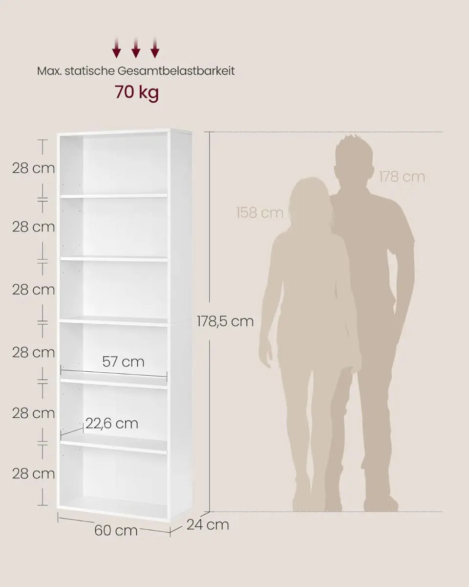 Bücherregal 6-stöckig Offenes Standregal Wolkenweiss, 24 x 60 x 178,5 cm