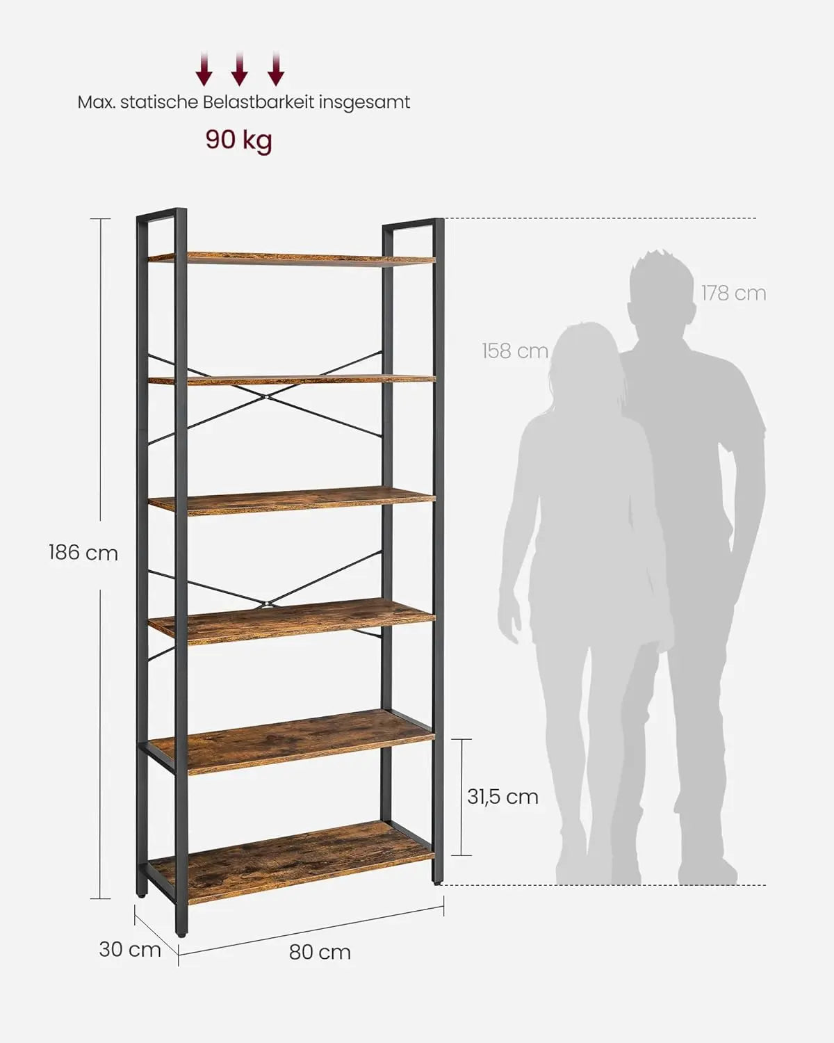 Viel Stauraum auf 6 Ebenen, Trägt bis zu 50 kg für schwere Bücher und Deko, Einfacher Aufbau mit gekennzeichneten Teilen und Kippschutz