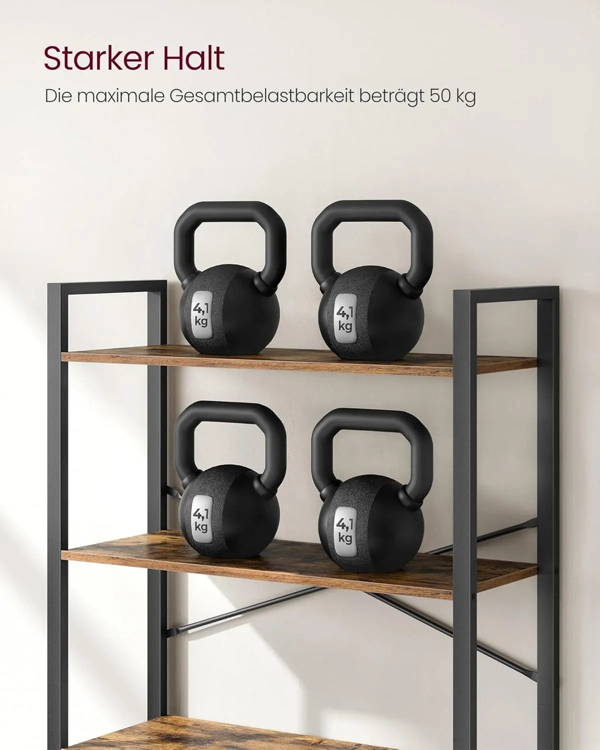Hergestellt aus hochwertigen Spanplatten und einem robusten Stahlrahmen, ist dieses Bücherregal nicht nur langlebig, sondern auch äusserst stabil. Es trägt bis zu 50 kg und sorgt dafür, dass Ihre Schätze sicher und fest an ihrem Platz bleiben.