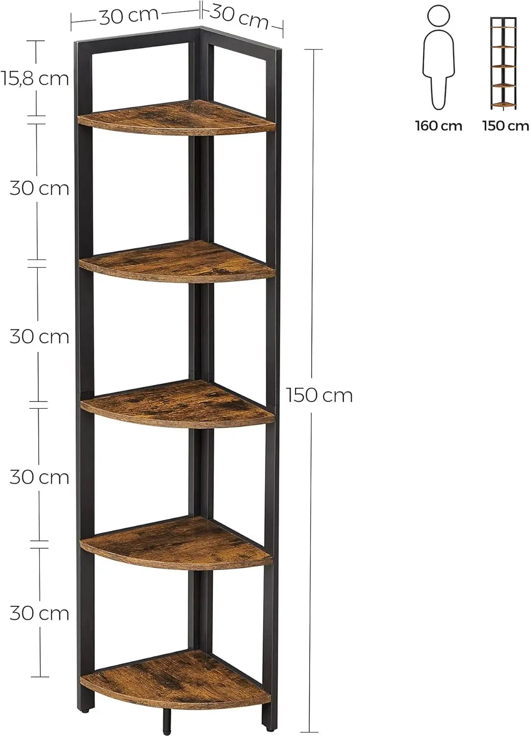 Entdecken Sie das SONGMICS Eckregal mit 5 Ablagen – die perfekte Lösung für stilvolle Aufbewahrung und Präsentation in jedem Raum! Mit seinen kompakten Massen von 30 x 30 x 150 cm passt dieses multifunktionale Regal mühelos in jede Ecke Ihres Wohnzimmers, Schlafzimmers, Büros oder sogar in die Küche.