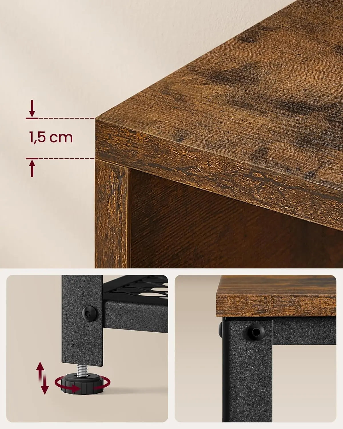 Kunden begeistert vor allem die Kombination aus rustikalem, industriellem Design und hoher Funktionalität. Besonders geschätzt werden das 5‑in‑1-Konzept mit doppellagigem Regal, 7 Kleiderhaken und 3 Magneten für Schlüssel, die stabile Stahlkonstruktion, die belastbare Sitzbank (bis 136 kg) sowie die verstellbaren Füße für sicheren Stand und einfache Montage.