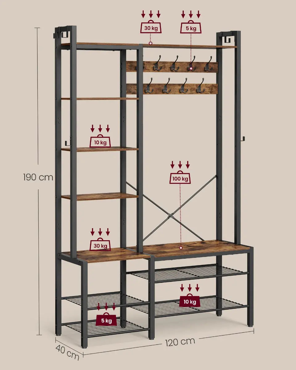 Garderobenständer mit Schuhbank Vintagebraun 4-in-1