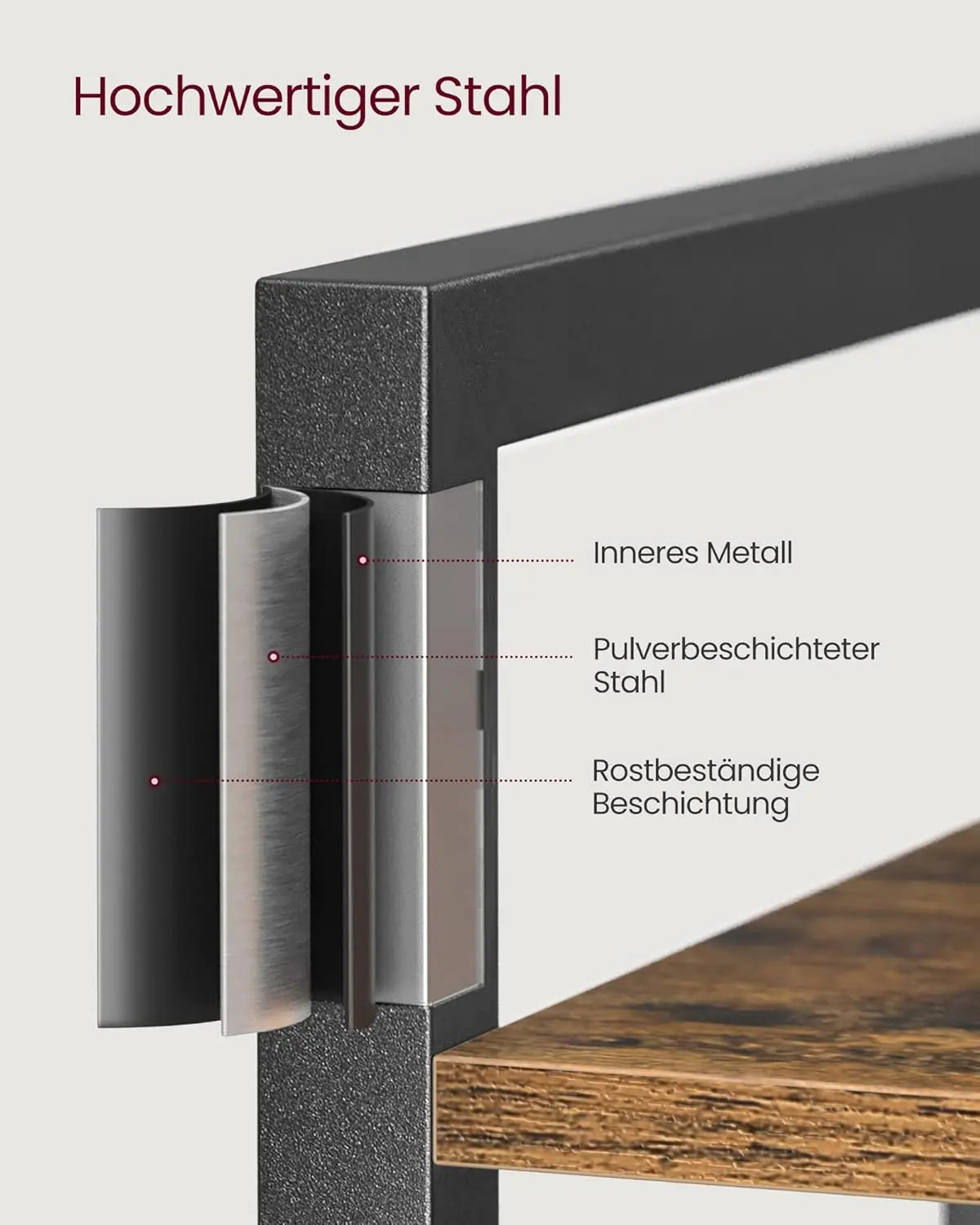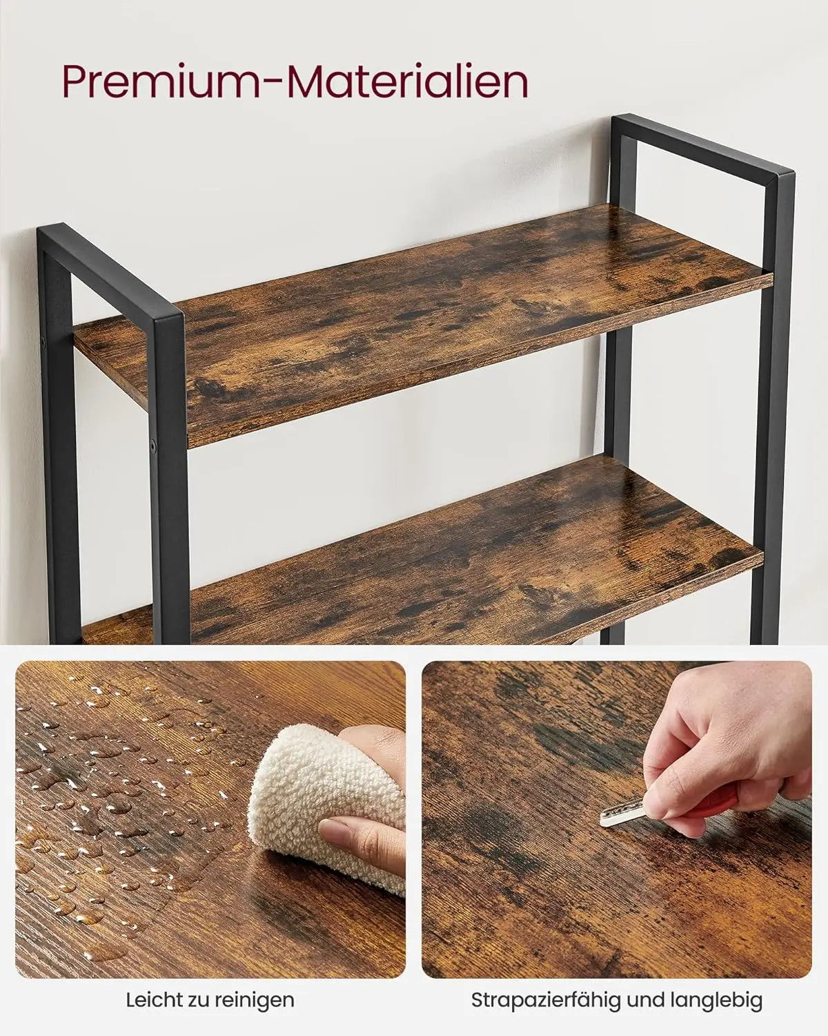 Hergestellt aus robustem Stahl und hochwertigen Spanplatten, ist das SONGMICS Regal stark genug, um bis zu 50 kg zu tragen. So finden Ihre Bücher, Dekoartikel und mehr ein zuverlässiges Zuhause, das Ihnen über Jahre hinweg Freude bereitet.