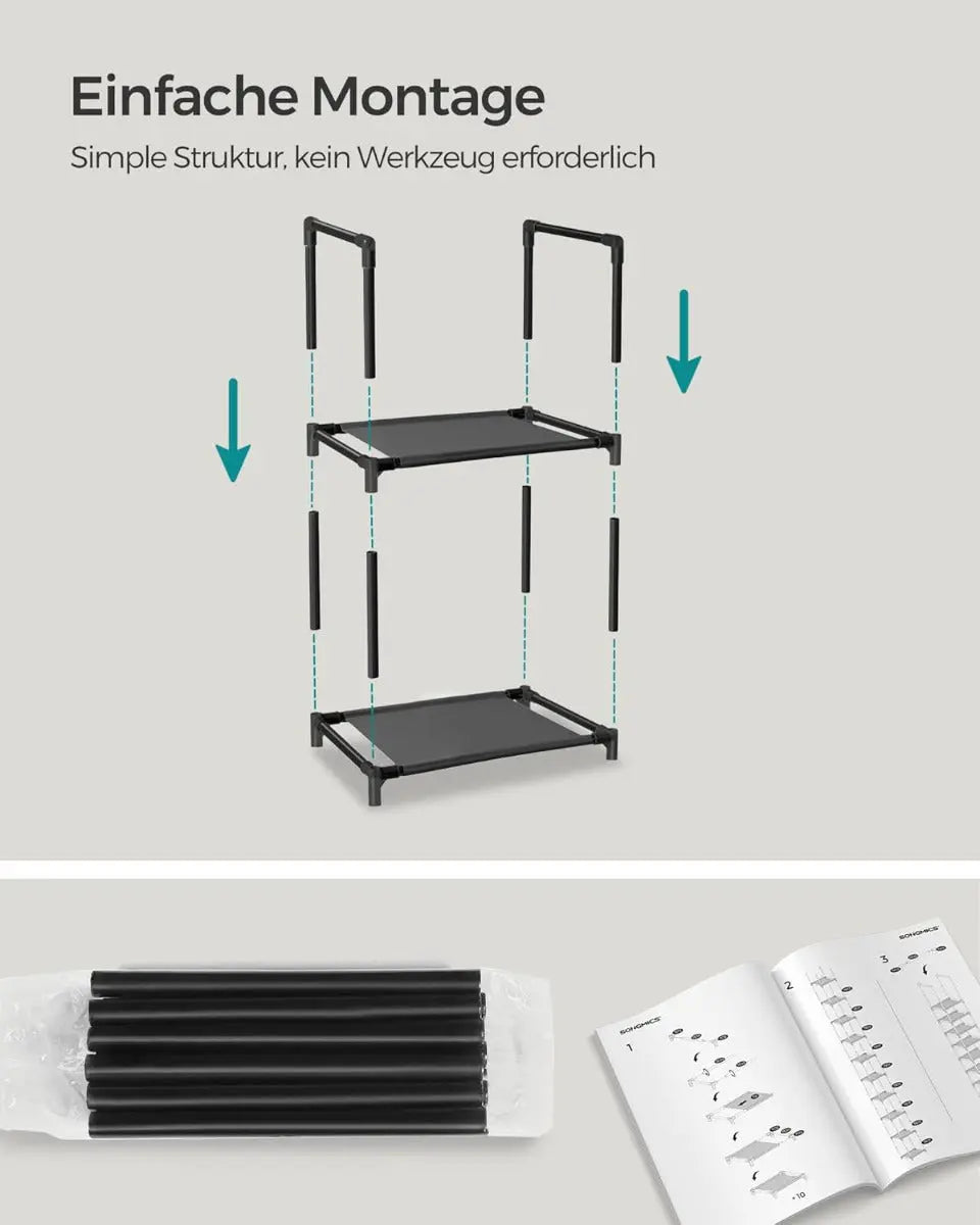 Das stabile Metallgestell sorgt für hohe Stabilität und Langlebigkeit, während die strapazierfähigen Ablagen aus Vliesstoff Ihre Schuhe sanft und sicher aufbewahren. Und keine Sorge, die Montage ist kinderleicht! Dank der verständlichen, bebilderten Anleitung und klar gekennzeichneten Einzelteile wird der Zusammenbau zum Kinderspiel.