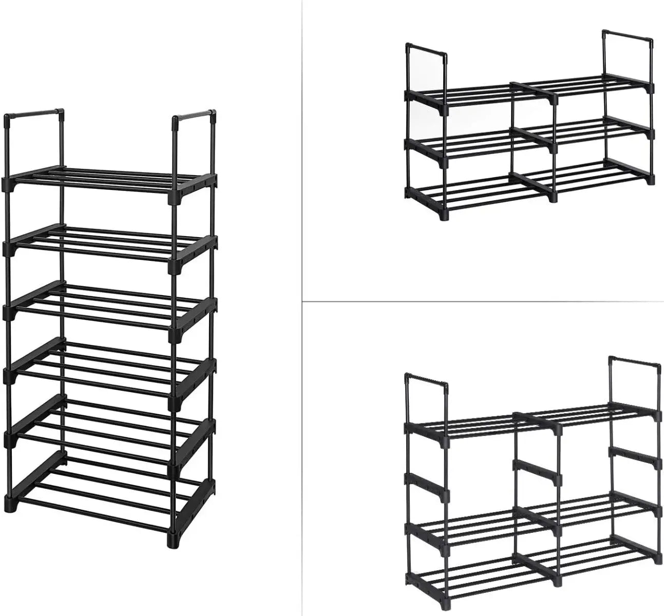 Schuhregal Schuhschrank mit 6 Ebenen – SONGMICS, Metallgestell, Schwarz, 30 × 45 × 106 cm
