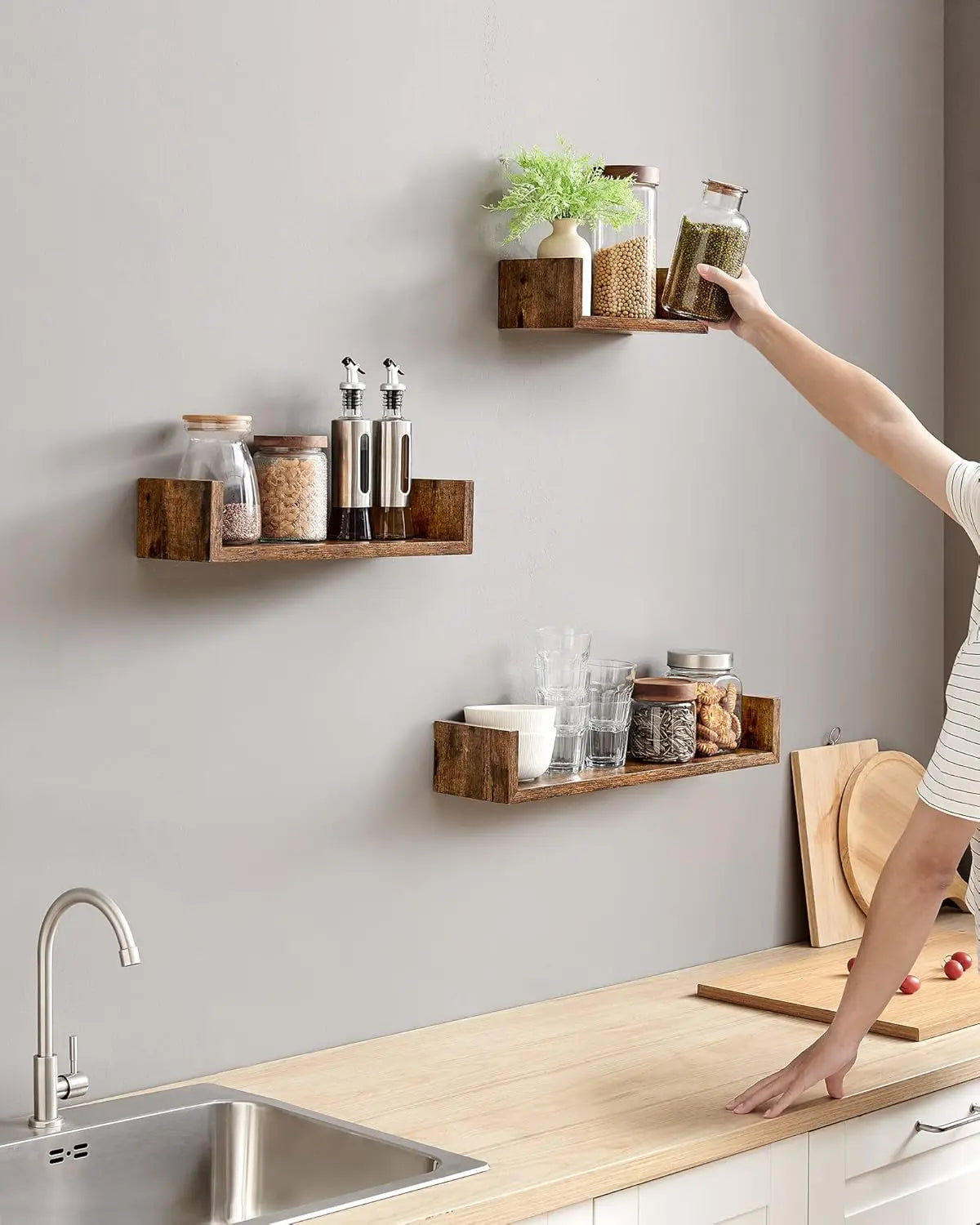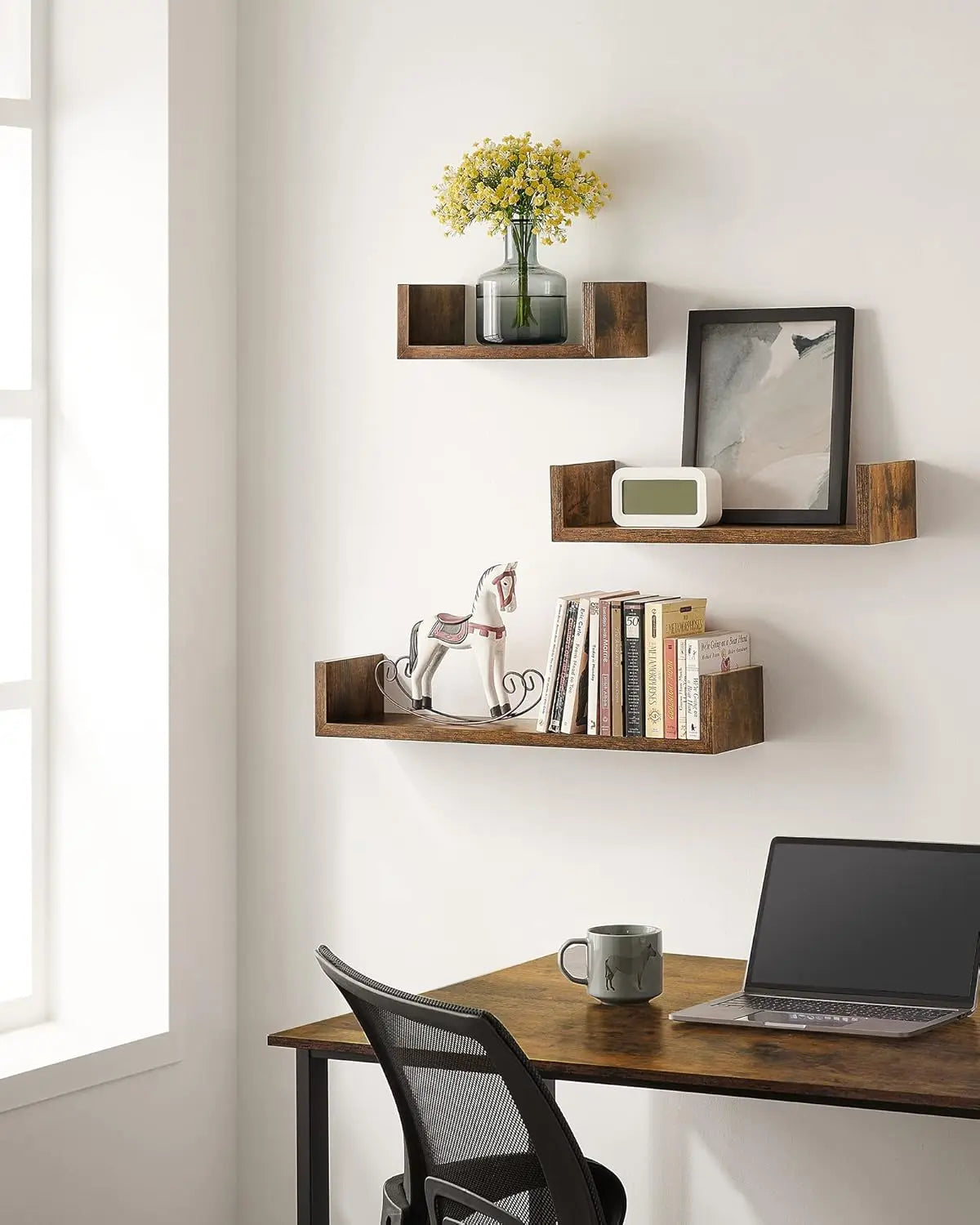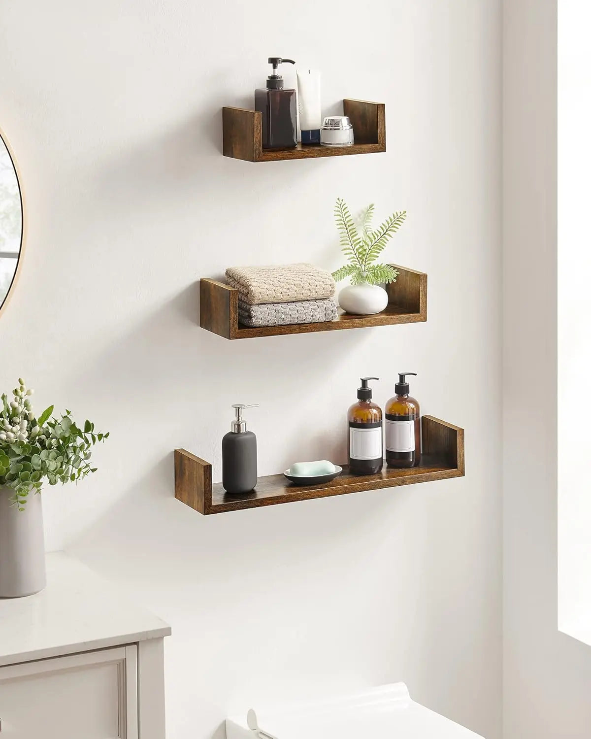 Entdecken Sie das SONGMICS Wandregal-Set, das aus drei stilvollen Schweberegalen in den Grössen 30, 45 und 60 cm besteht. Mit ihrer ansprechenden vintagebraunen Oberfläche verleihen diese Regale Ihren Wänden nicht nur Charakter, sondern auch eine ordentliche und stilvolle Aufbewahrungslösung für Ihre Lieblingsdekorationen und Bilderrahmen.
