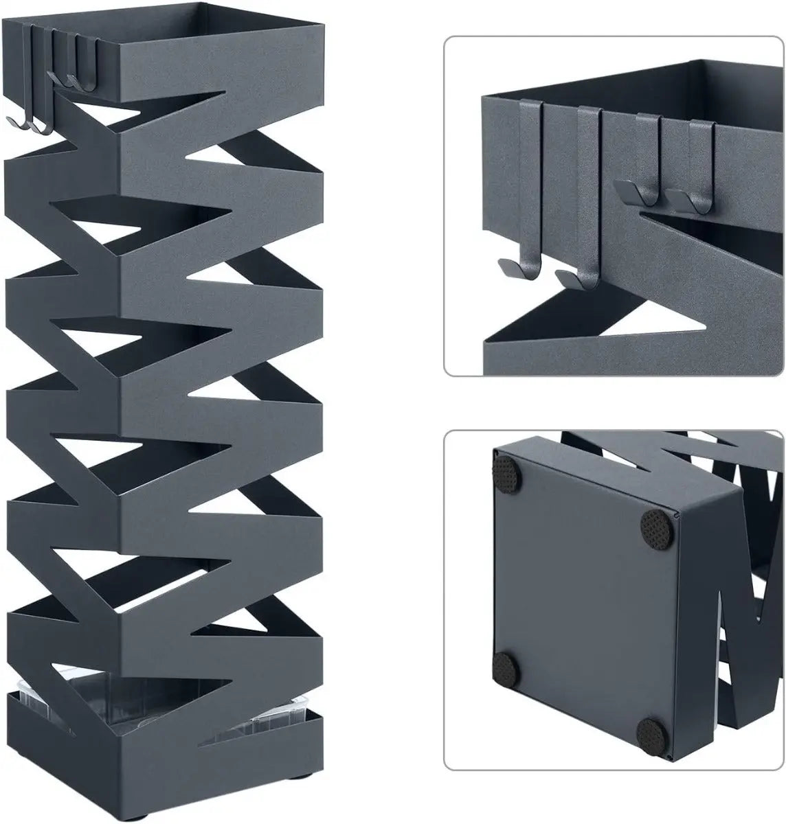 Regenschirmständer Metall quadratisch mit Haken Anthrazit