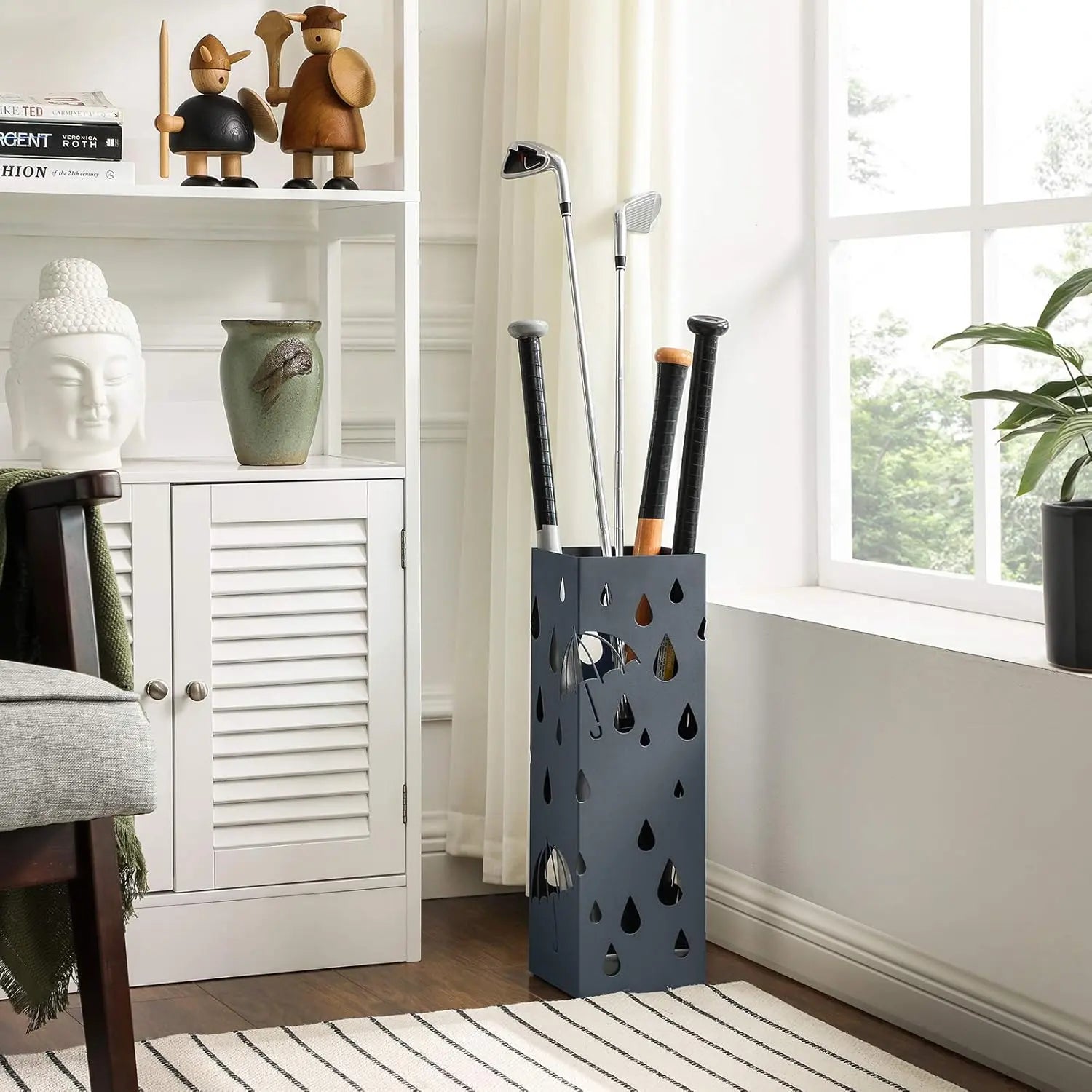 Entdecken Sie den SONGMICS Regenschirmständer aus Metall – die perfekte Kombination aus Funktionalität und Stil für Ihren Flur! Mit seinen kompakten Massen von 15,5 x 15,5 x 49 cm und dem eleganten anthrazitfarbenen Finish wird dieser quadratische Schirmständer zum Blickfang in Ihrem Eingangsbereich.