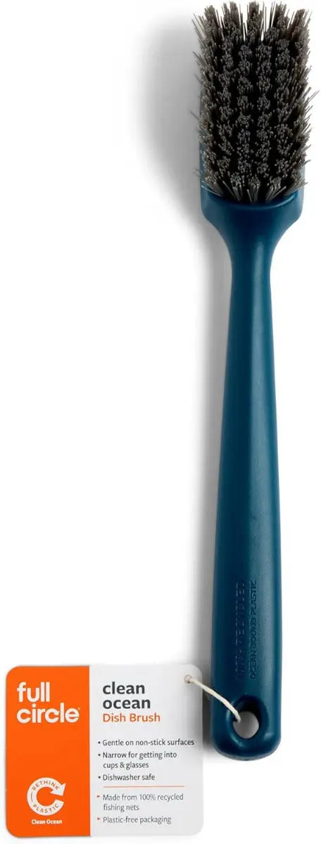 Die Geschirrspülbürste Clean Ocean von Full Circle vereint Nachhaltigkeit und Funktionalität in einem durchdachten Design. Sie wird aus 100 % recycelten Fischernetzen hergestellt und trägt aktiv dazu bei, Plastikmüll aus den Ozeanen zu reduzieren. Der ergonomisch geformte Griff sorgt für eine komfortable Handhabung und erleichtert das Schrubben selbst hartnäckiger Verschmutzungen.
