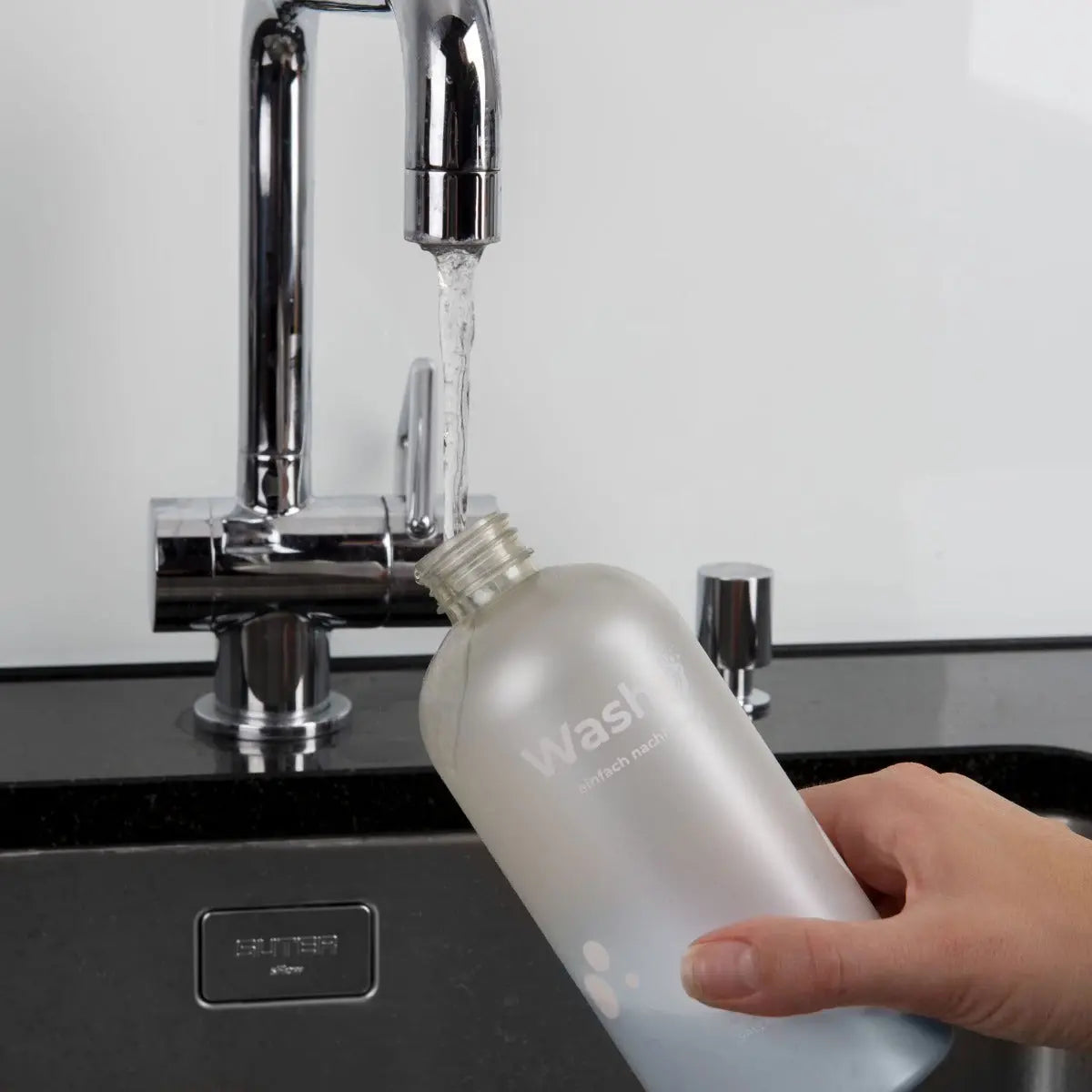- Flasche langsam mit Wasser auffüllen