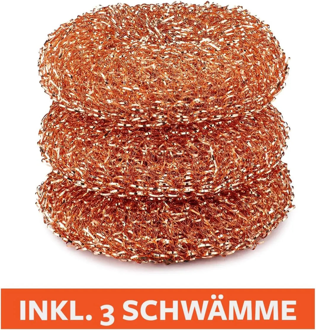 - NATURFREUNDLICHE MATERIALIEN: Unsere Kupfer-Putzschwämme bestehn zu 100% aus Kuper und enthalten kein Plastik und sind nach langer Lebensdauer vollständig recyclebar. Jeder Schwamm misst etwa 7.5 cm, im Set sind 3 Schwämme enthalten