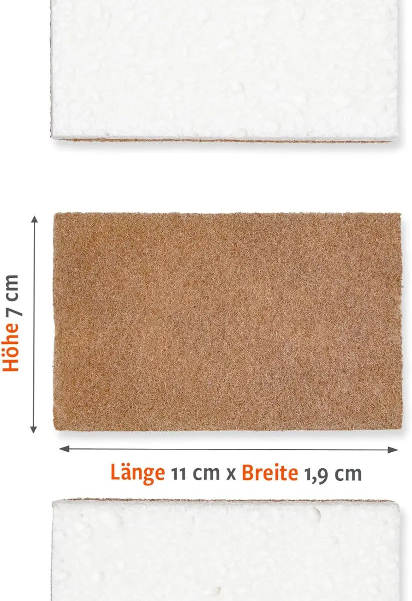 Mit seiner saugfähigen und abrasiven Struktur eignet sich der Schwamm perfekt zum Reinigen von Geschirr, Arbeitsplatten und Haushaltsgeräten. Trotz der Verwendung von Walnussschalen ist der Schwamm auch für Personen mit Nussallergien unbedenklich, da die Pads keine allergischen Reaktionen hervorrufen.