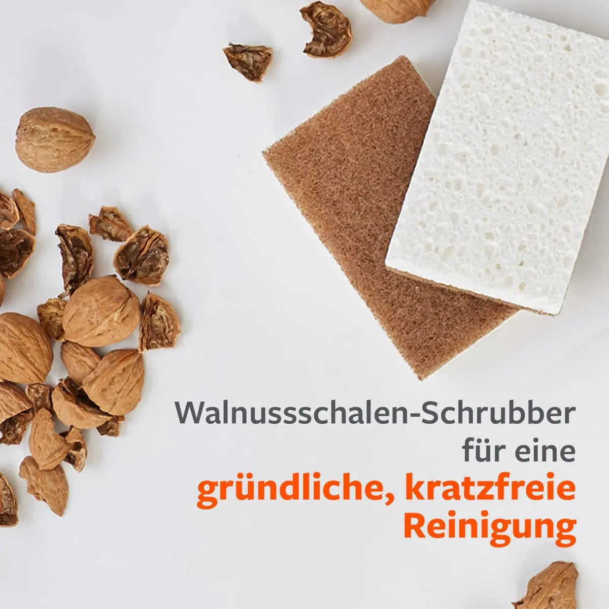 - NATURFREUNDLICHE MATERIALIEN: Unsere Putzschwämme ohne Triclosan sind aus Walnussschalen, Zellulose und recyceltem Kunststoff hergestellt. Die raue Seite aus Wallnuss verursacht keine allergischen Reaktionen, selbst die minimale Verpackung ist nachaltig