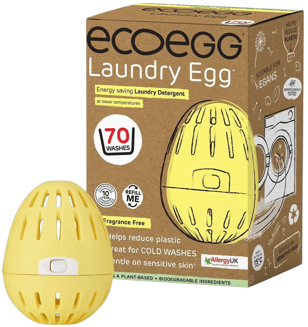 Das ecoegg ist erhältlich in den Duftnoten Spring Blossom, Fresh Linen und Fragrance Free. Weder das ecoegg noch die Pellets darin enthalten tierische Stoffe – es ist damit 100% Vegan. Das Waschei reicht für bis zu 70 Waschgänge. Refill-Pellets für das Waschei sind ebenfalls erhältlich. Wenn nach 70 Waschgängen eine Abwechslung gewünscht ist, kann das ecoegg mit Pellets einer anderen Duftnote nachgefüllt werden.