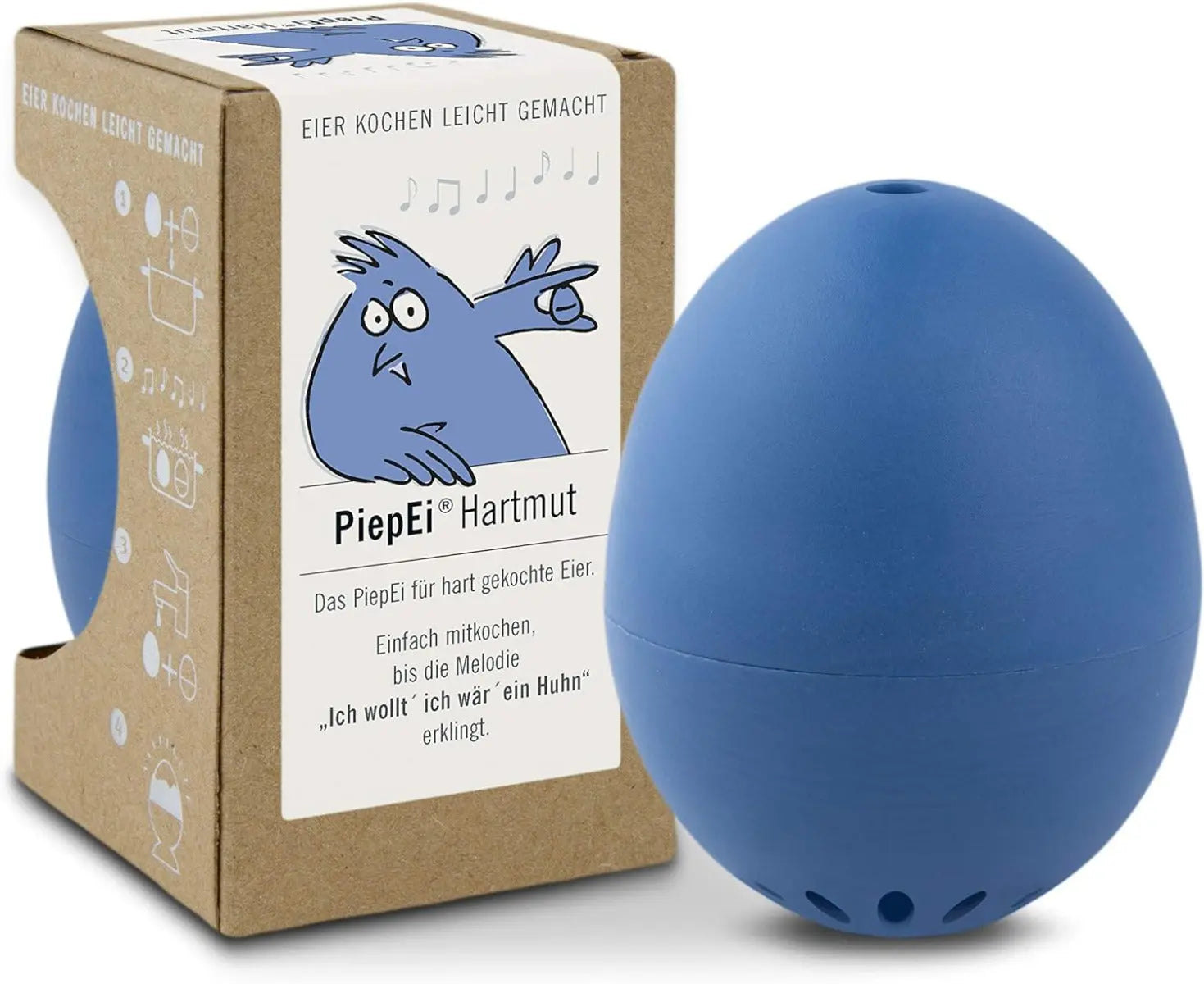 Zu weich, zu hart – aber nie auf den Punkt. Auch das perfekte hart gekochte Ei ist eine Wissenschaft für sich. Von wegen hart gekocht kann jeder. Aber kein Problem für PiepEi Hartmut. Einfach mit den Eiern lagern, zusammen mit den Eiern kochen und warten bis das PiepEi Hartmut singt. Egal mit welcher Wassertemperatur man startet und egal auf welcher Höhe man kocht, das Ei wird perfekt.Das PiepEi Hartmut spielt „Ich wollt' ich wär ein Huhn“ sobald das hart gekochte Ei fertig ist.