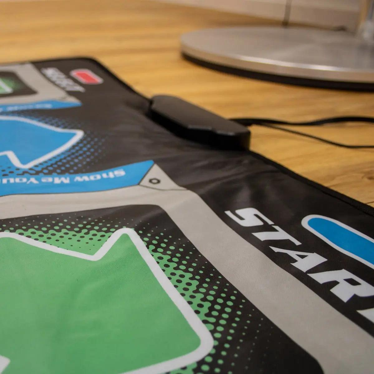 Wenn du dich für die 80er Jahre und die Arcade-Tanzspiele begeisterst, dann ist diese Tanzmatte perfekt für dich! Diese Matte ist ein echter Blickfang, denn sie hat ein retro Design, das an die 80er Jahre Arcade-Tanzmaschinen erinnert, mit leuchtenden Farben und geometrischen Mustern. Die Tanzmatte ist aus qualitativem Material hergestellt und hat eine anti-rutsch Oberfläche, damit du dich ganz auf deine Tanzschritte fokussieren kannst. Die Matte ist einfach und schnell mit den beiliegenden Clinch-Kabel an deinen TV anzuschließen. Du hast die Auswahl zwischen 3 verschiedenen Schwierigkeitsgraden und 110 Songs und kannst deine Punktzahl auf dem Bildschirm sehen! Diese Matte ist ein super Geschenk für alle, die Musik und Bewegung lieben.