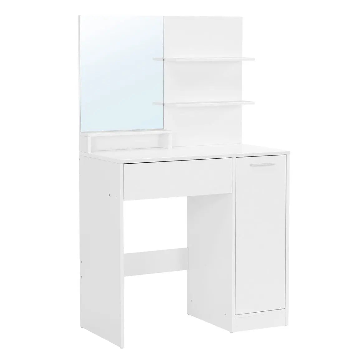 Mit einem grosszügigen Spiegel und durchdachten Aufbewahrungsmöglichkeiten, darunter zwei verstellbare Ablagen hinter der Tür, eine praktische Schublade und zwei zusätzliche Ablagen, haben Sie alles griffbereit. Ob Lippenstift, Gesichtscreme oder Lidschatten – alles findet seinen Platz und sorgt für einen aufgeräumten Tisch, der Ihre Schönheit unterstreicht.