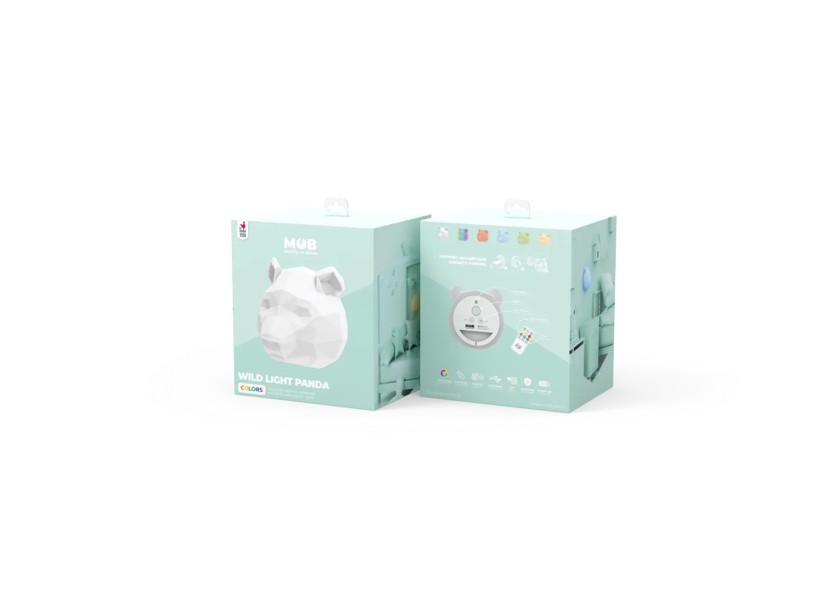 Die MOB-Lichter wurden entwickelt, um Ihre Räume zu beleuchten und ihnen einen Hauch von Pop zu verleihen. Mit einem Magneten auf der Rückseite ausgestattet, lässt sich das Nachtlicht überall dort positionieren, wo Sie es wünschen. Das Nachtlicht wird mit einer Fernbedienung eingeschaltet und wechselt dann je nach Modus die Farbe. Mit der Fernbedienung können Sie die Intensität des Lichts, seine Farben (7 Farben verfügbar) und seine Modi (15-30-60 Minuten, Farbverlauf...) steuern. So können Sie die Atmosphäre Ihrer Wahl schaffen!