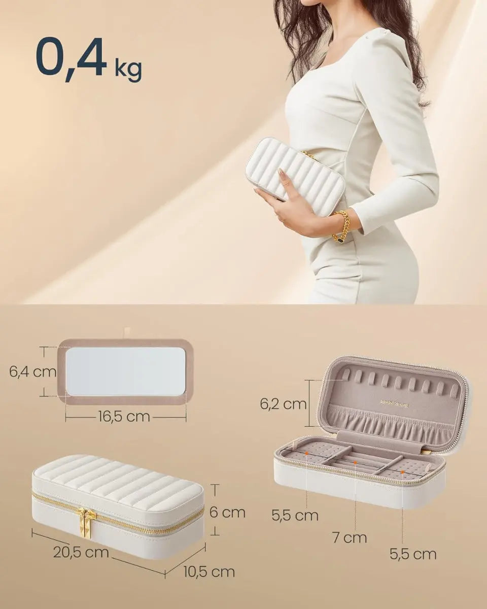 SONGMICS HOME ANAH Schmuckkästchen Reise – 10,5 × 20,5 × 6 cm, mit Spiegel & Reissverschluss, flexible Fächer, kompakt & elegant