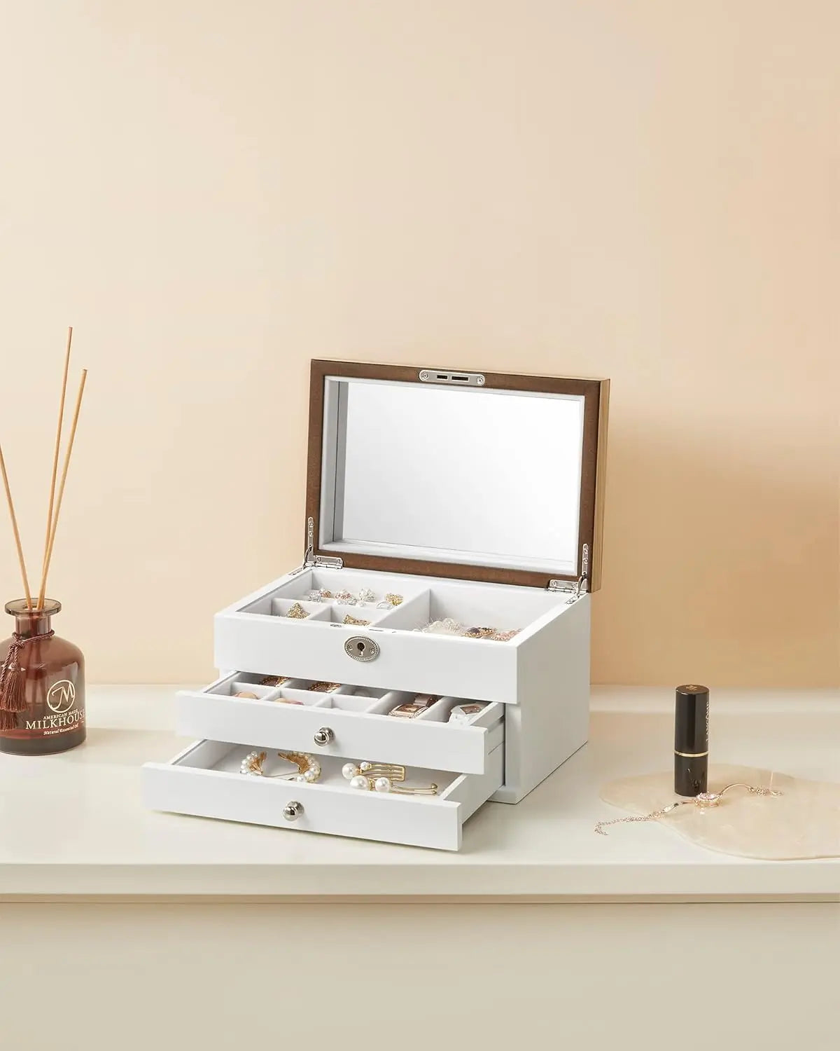 Schmuckkästchen mit Spiegel und Schubladen Weiss