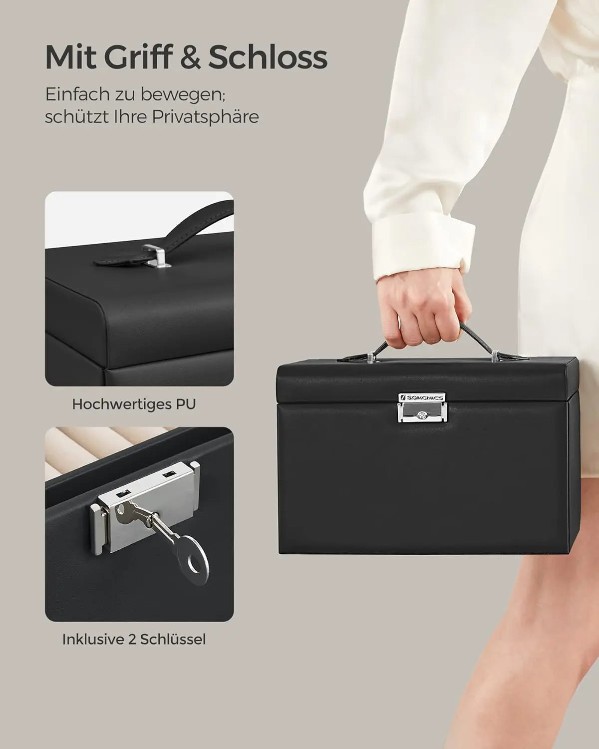 Erleben Sie die Kombination aus Funktionalität und Eleganz mit dem SONGMICS Schmuckkasten – Ihre Schmuckstücke verdienen nur das Beste!