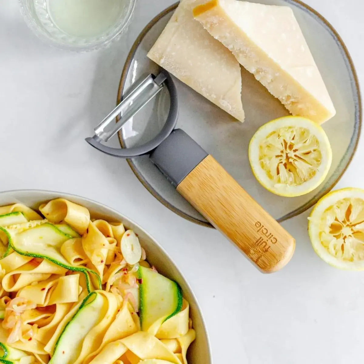 Die Verwendung von nachhaltigen Materialien wie Bambus und recyceltem Kunststoff unterstreicht das Engagement der Marke Full Circle für Umweltfreundlichkeit. Die Klingen sind mit einer ungiftigen Beschichtung versehen, die die Sicherheit in deiner Küche gewährleistet. Ob für Hobbyköche oder Profis – dieser Schäler erfüllt höchste Ansprüche und wird schnell zu einem unverzichtbaren Helfer in deinem Küchenalltag.