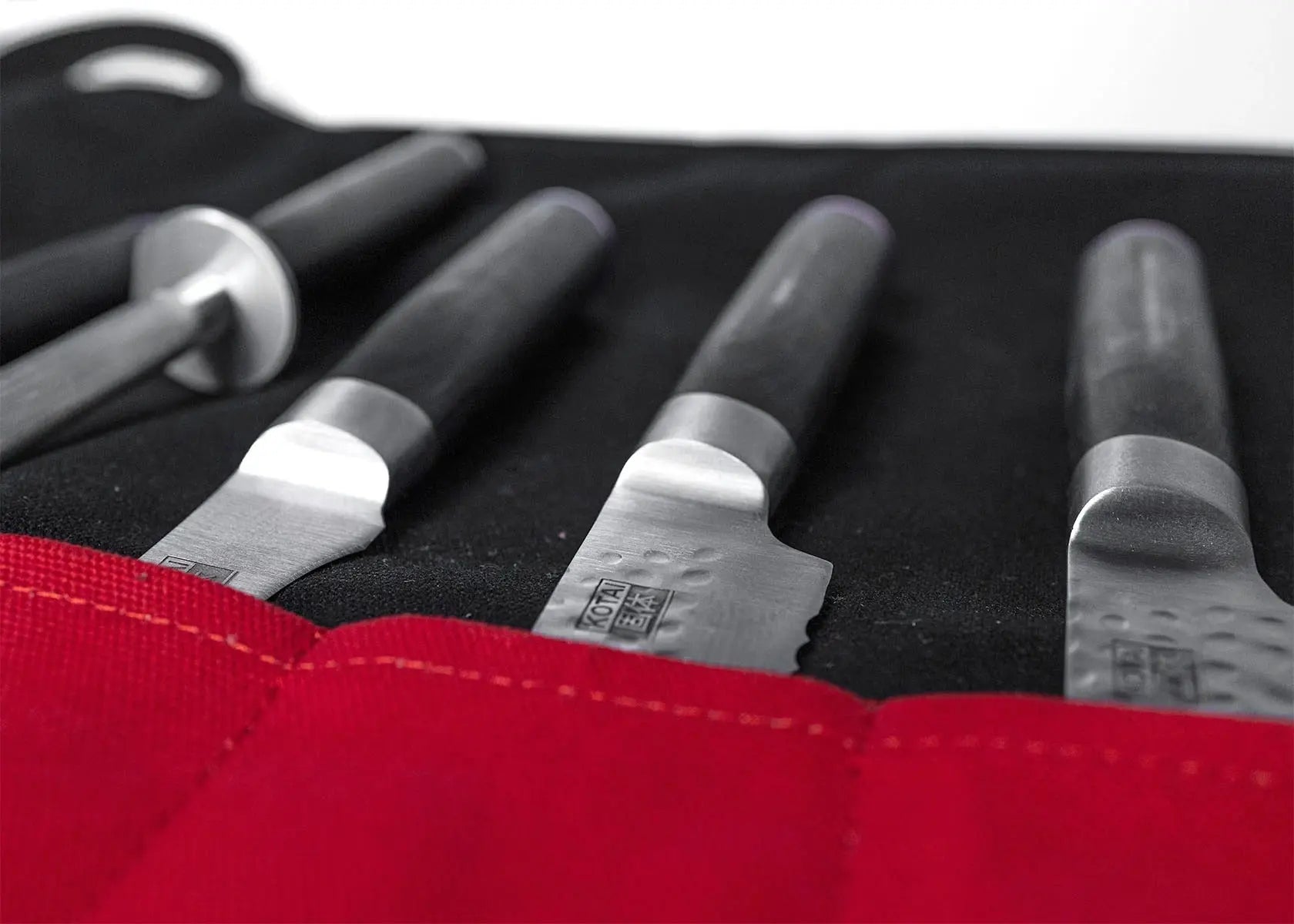 Ideal für Köche, die immer unterwegs sind oder einfach eine praktische und sichere Möglichkeit suchen, bis zu 6 verschiedene Messer und einen Abziehstahl mit sich zu führen.